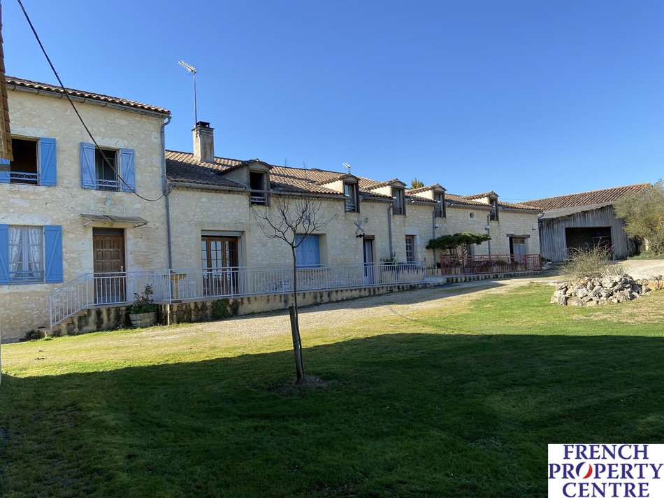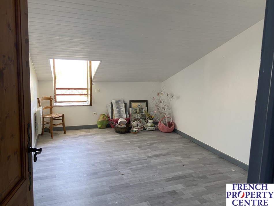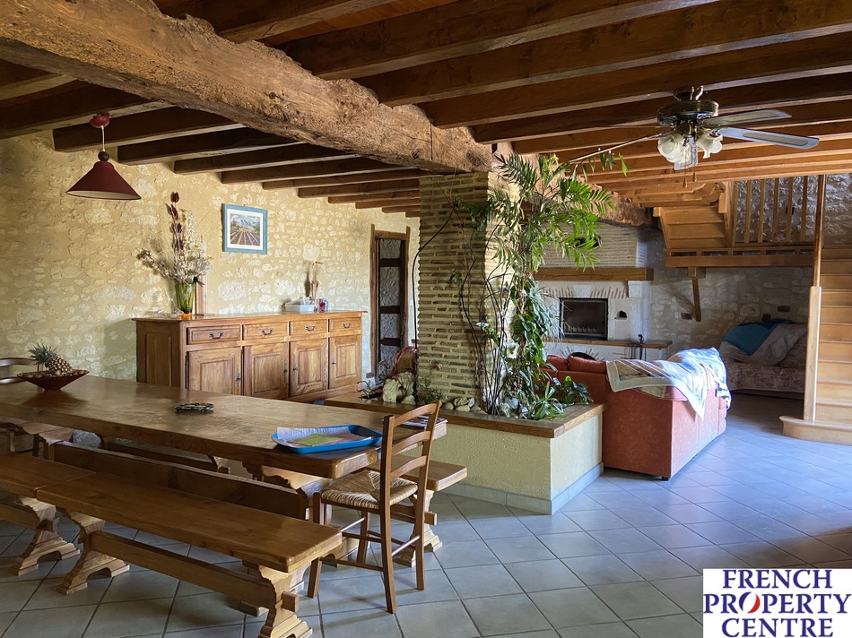 A collection of buildings suitable for professional and residential use situated in a peaceful location overlooking pleasant country views. The main house is divided into two good sized dwellings and the outbuildings would be ideal for those looking to create a gite complex or multi-family home [subject to planning permission]. Land surrounding the property measures around 5,8 hectares and additional land is available by separate negotiation. For anyone wanting to carry on a building/carpentry business, all tools and machinery can be purchased separately