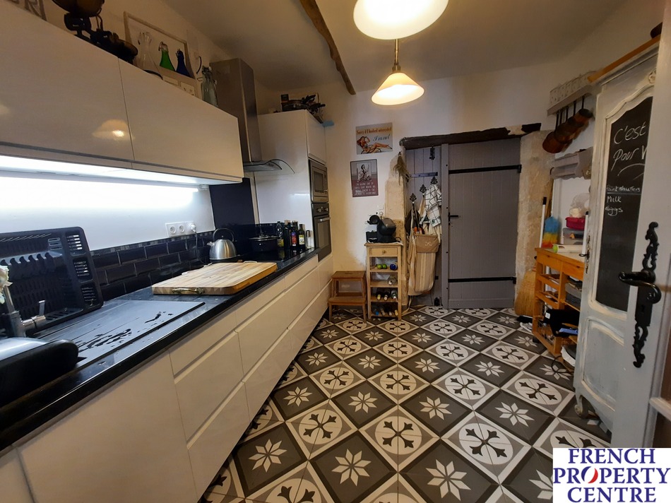 A minutes walk from the centre of Eymet this renovated two bedroom stone property offers opportunity to extend further.There is a good sized open plan lounge :dining area a separate kitchen and a bathroom.Scope to extend into the barn area or the loft and create a roof terrace