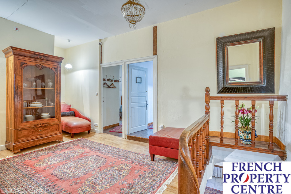 Elegant village house with courtyard and workshop. The stone dwelling consists, on the ground floor, of an entrance hall opening onto a magnificent staircase, separate toilets, a living room, dining room with stone fireplace equipped with a wood stove, a kitchen with central island overlooking the inner courtyard not overlooked, a back kitchen with sink and dishwasher, a laundry room and a workshop. Upstairs, a large landing leads to four bedrooms from 11 m2 to 19 m2, all with en-suite shower rooms and toilets. Joineries are in wood double glazing, heating by wood stove and recent electric radiators