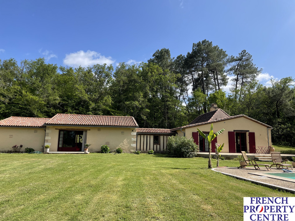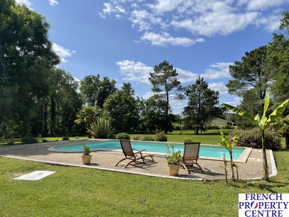 210m2 single storey home combining old and modern, comprising a 67m2 living room, two bedrooms, a bathroom, WC, a kitchen-diner and a second living room, as well as a separate part (a studio with living/bedroom, kitchenette and shower room/WC). A 55m2 garage, a barn, and a 9 x 4m swimming pool complete this property, away from any nuisance, in the center of a one hectare wooded plot on the edge of a village. Beautiful volumes, a quiet location!
