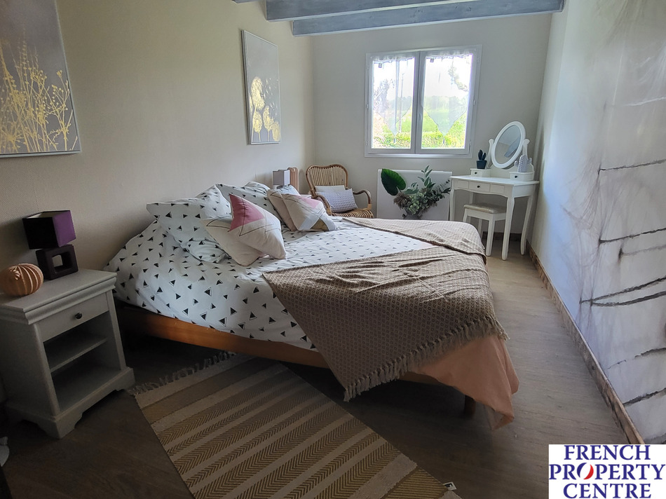 Great opportunity to aquire this lovely stone property with a 'maison d'amis' and a large barn. Located in a small village with a stunning view over a lake, the main house comprises 3 bedrooms, 2 shower rooms, an office, laundry room and a large kitchen/dining and living area. Large attic space with window. 2 bedroom guest house with shower room, laundry room, fitted kitchen and a large living room with its own separate private garden. The barn has large amount of storage, and an open part that makes a lovely seating area. Large tobacco barn split into a fitness/games area and storage area. On nearly 6.5 acres of land