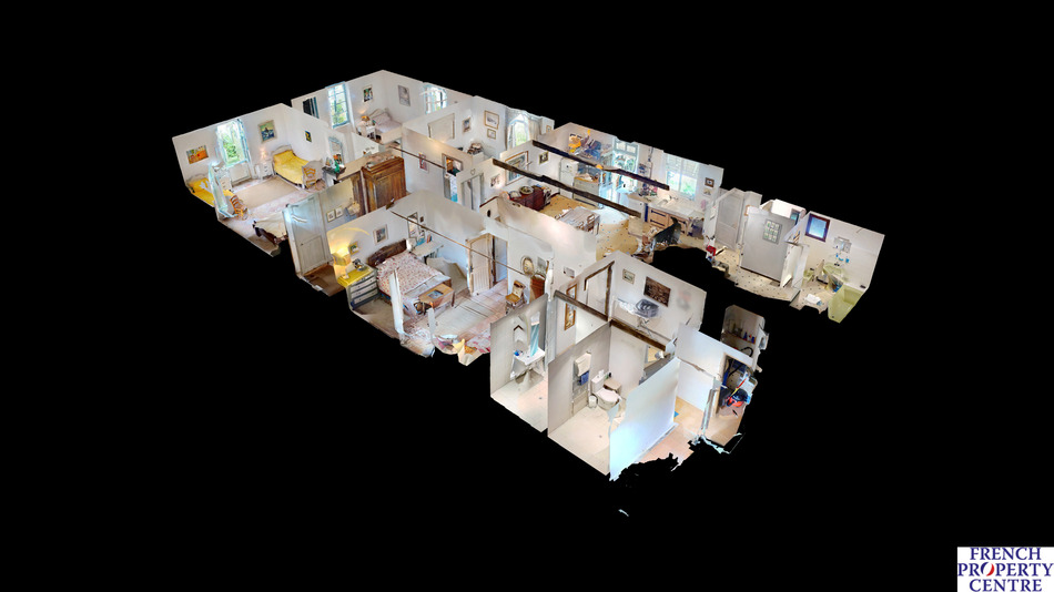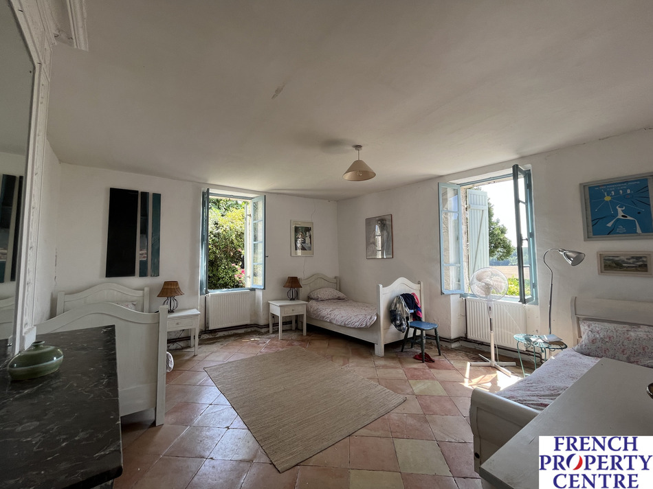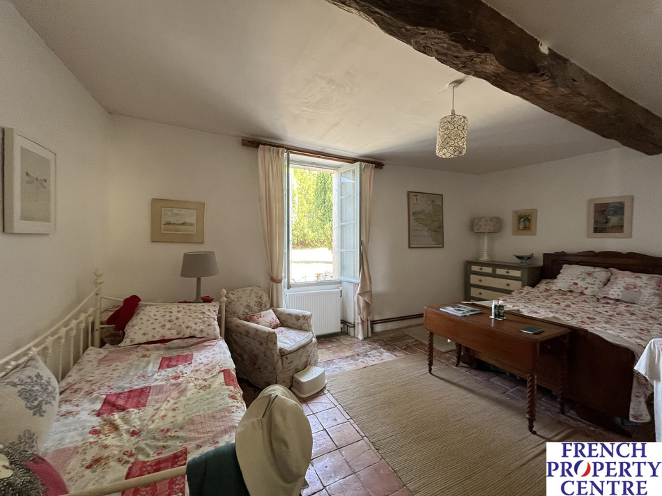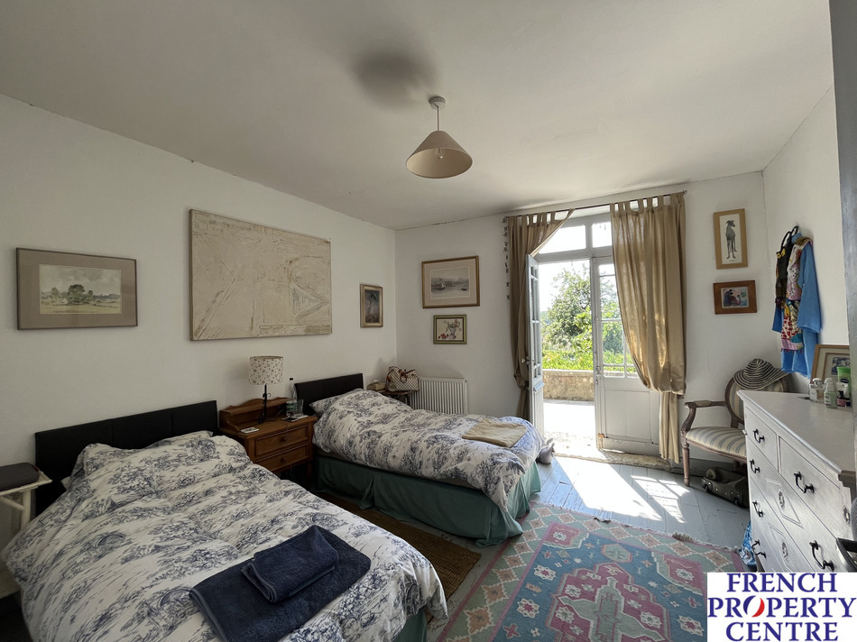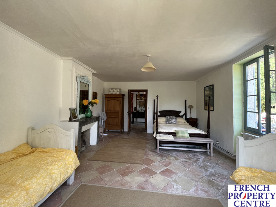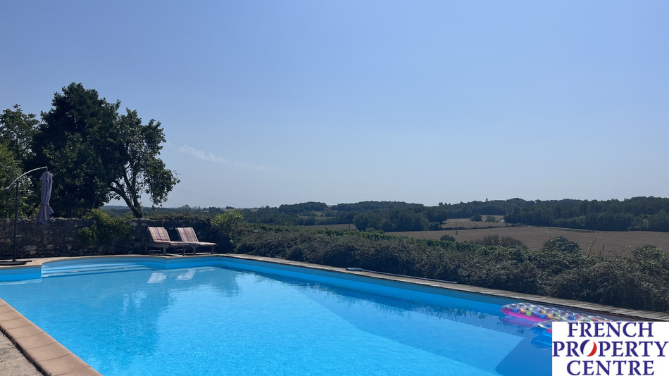 Rarely found on the market, this charming property comprises an 80m2 first floor living area with views. On the ground floor is a large kitchen, four bedrooms, two shower rooms and a retro bathroom. The fabulous back terrace with its covered part for summer evening dining looks over the surrounding countryside and gardens. Lovely pool with terrace. The house has two large attached barns and a four roomed house that requires renovation. Beautiful property, an early visit is recommended