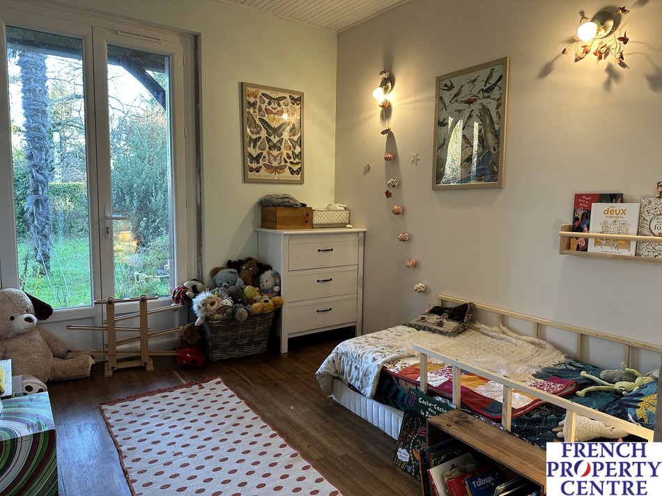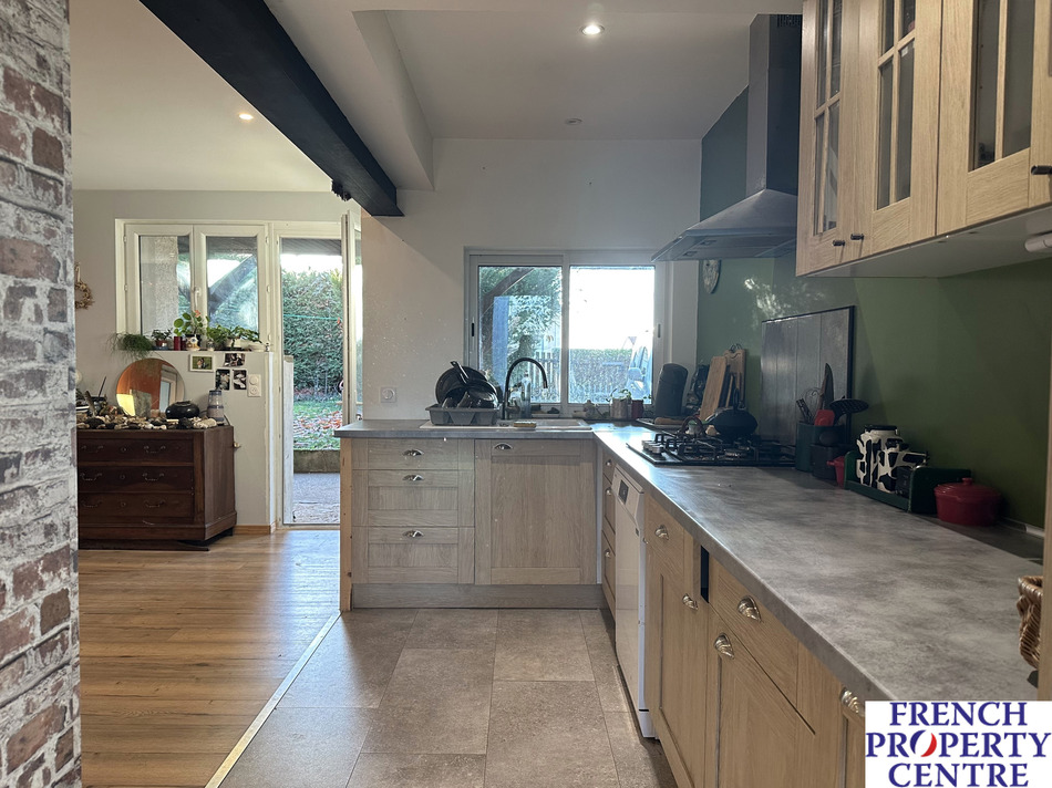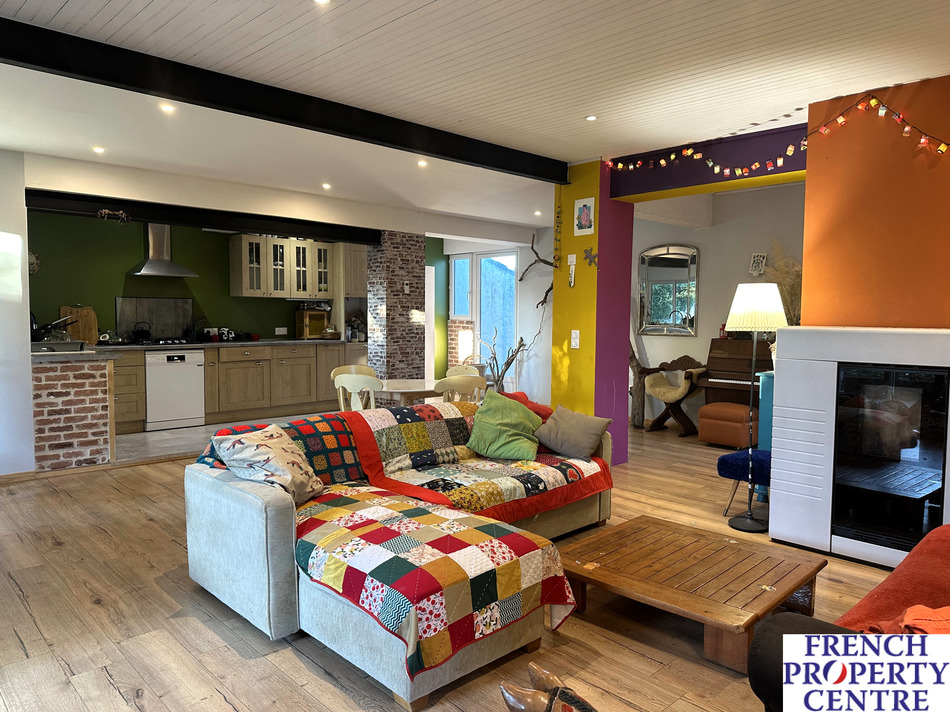 Very nice location for this completely renovated 100 m2 single storey house on the edge of Belves. On 3630 m2 of land in a building area, the house consists of a living room of 55 m2 with open kitchen, three bedrooms, toilet and bathroom. Large covered terrace and attached garage. An independent workshop of 100 m2 on two levels. Pellet stove heating, double-glazed joinery and insulated attic. Open view and quiet environment. Close to shops and schools.