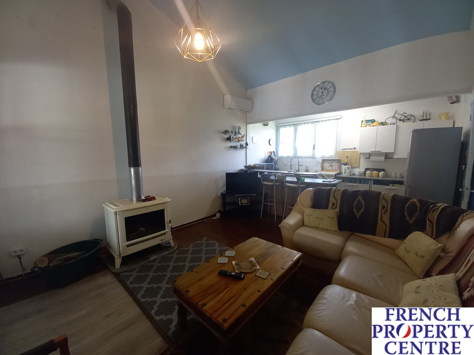 Lovely 60m2 bungalow in a quiet estate with a large fishing lake on the outskirts of Villereal. The house offers a double living-room, an open plan fitted kitchen, a shower-room, toilet and a bedroom. Private parking area.