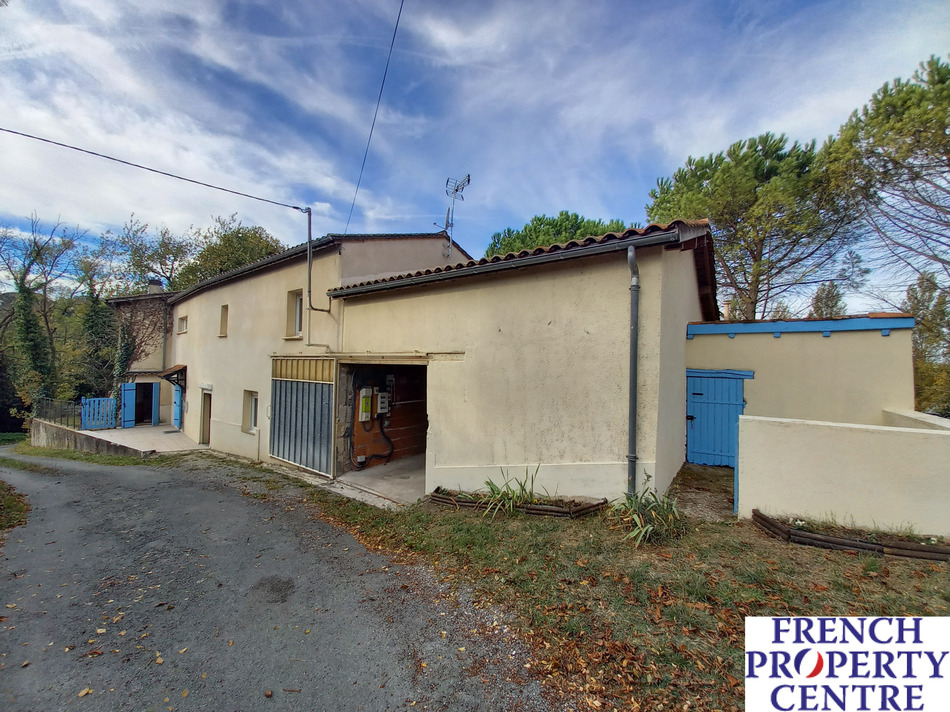 On the outskirts of Lougratte village, old stone house offering 215m2 living space with 5 bedrooms, 2 bathrooms, 3 toilets, living-room, dining-room, lounge and kitchen. Various outbuildings (for a total of 169m2) on approximately 1.35 acre of land with a well, fruit trees etc. and views on the lake (free access to the lake and its free activities). House roof redone between 2004 and 2010 and insulated (Energy efficiency report in C). Heat pump central heating + open fireplace, double glazing, septic tank inspected in February 2023 (no defaults). A must see !