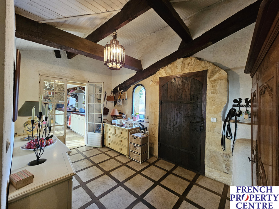 PRiCE REDUCED - Old Stone Perigourdine style property from the 17th century. including more than 8 hectares of wood and fields, perfect for animals. The property consists of 5 bedrooms, 4 bathrooms, large living spaces. Lots of character, swimming pool, tennis court, barn and gite to renovate. A very calm location, 10 minutes from Lalinde with the train station and 20 minutes to Bergerac airport. Does require updating works. Do not hesitate to visit.