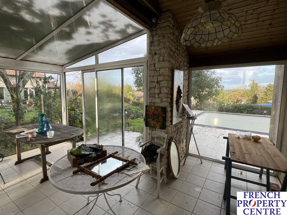 Unique 3 bedroom property walkable to the centre of Eymet. This house offers a kitchen, dining/living room, a veranda, 3 bedrooms, a bathroom and a separate toilet. in addtion there is a garage with an extra room. Outside there is a swimming pool 6 x 12m, but it is currently not functioning and there is 800m2 of land. Being just a 15 minute walk to the shops and restaurants, you are in a peaceful yet not isolated location.