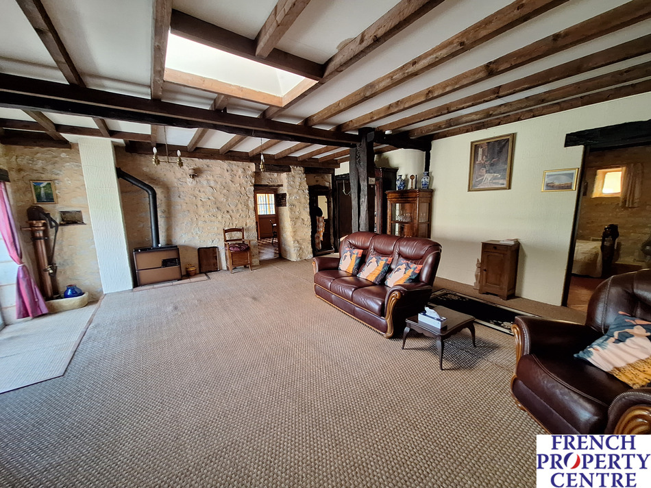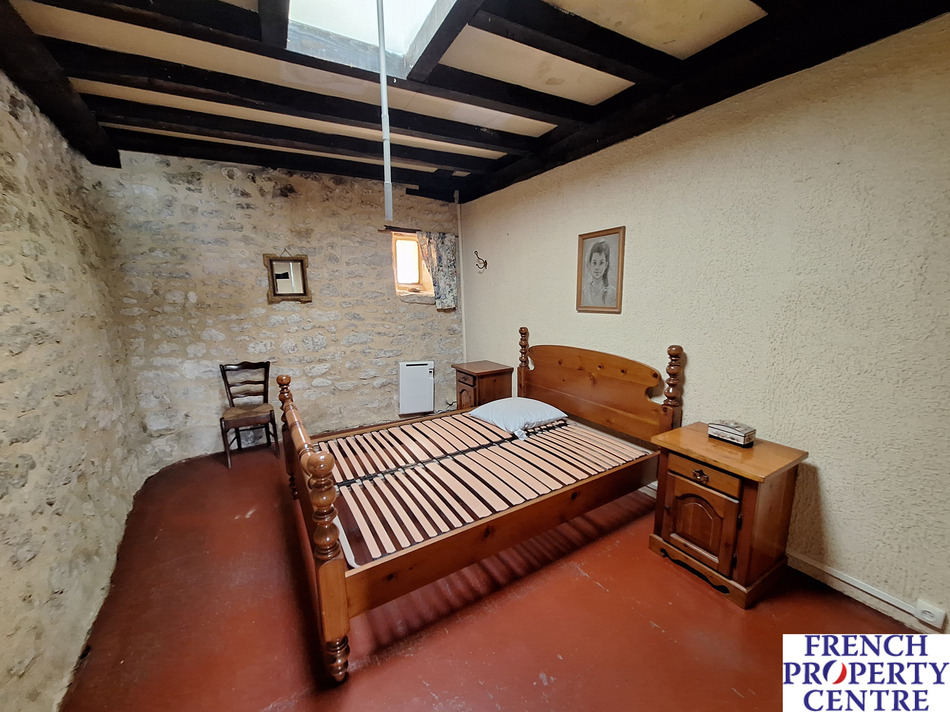 Stone house in a hamlet for renovation. Just under 100m2 habitable consisting of a kitchen, a living room equipped with an oil stove, 2 bedrooms each with a skylight and a bathroom. The property offers an adjoining 72m2 barn which could be used as a garage or to extend habitable area subject to planning, an enclosed garden and a terrace. Another small outbuilding with water and elec to be restored.