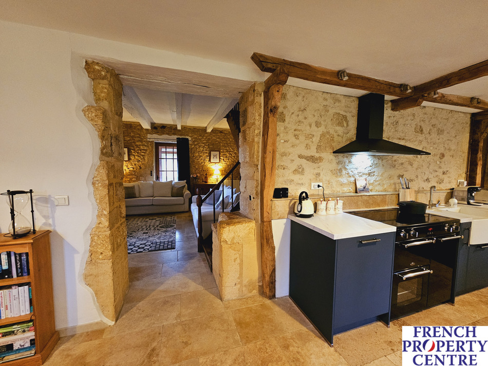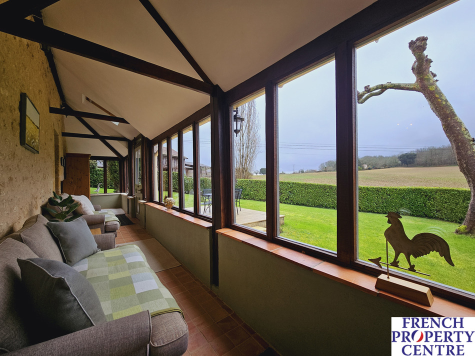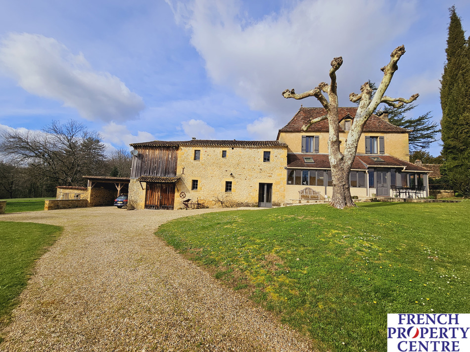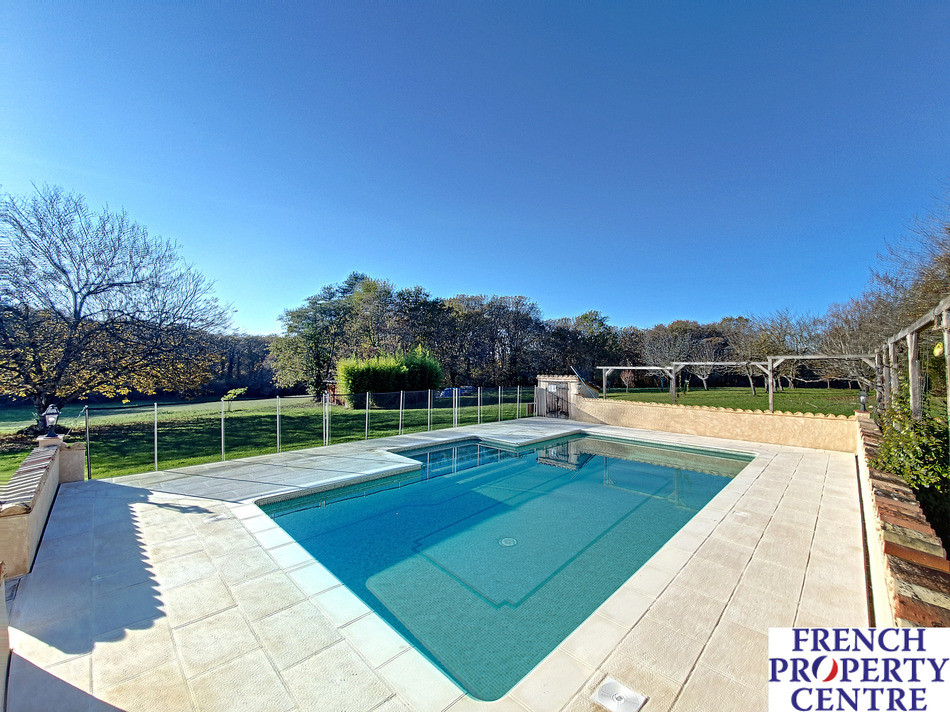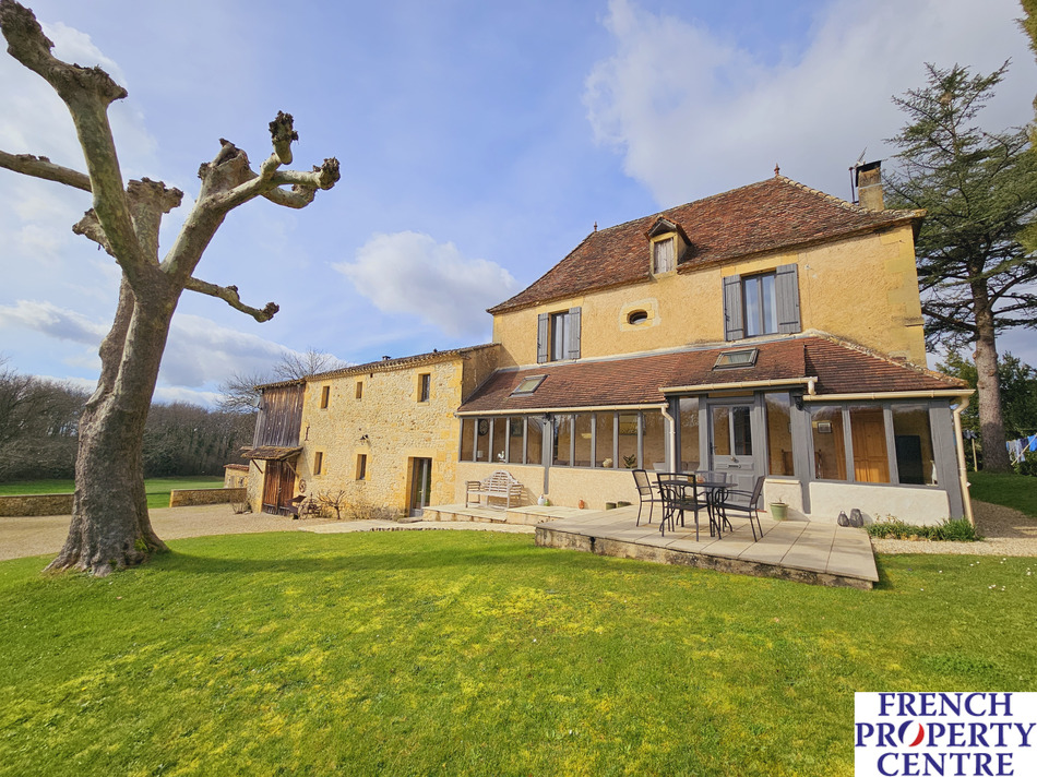 Just 3 km from Lalinde, very calm with beautiful veiws. This Stone house of approximately 287m2 of living space including 5 bedrooms, 2 ensuite, 2 living rooms, 2 kitchens, 2 bathrooms, dining room, laundry room, WC. Large garage with workshop, veranda, several terraces, outbuilding and large swimming pool of approximately 10 x 5 with alarm. On 52,215 m2 of land, including orchard and well. Quality renovation, oil central heating and wood burner.