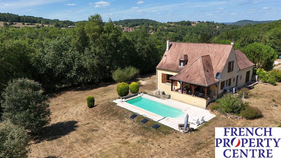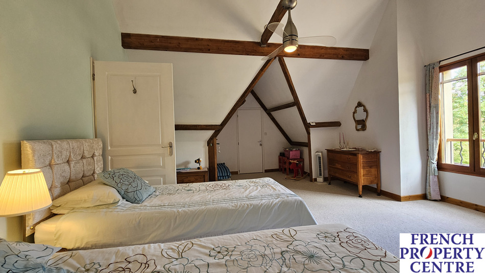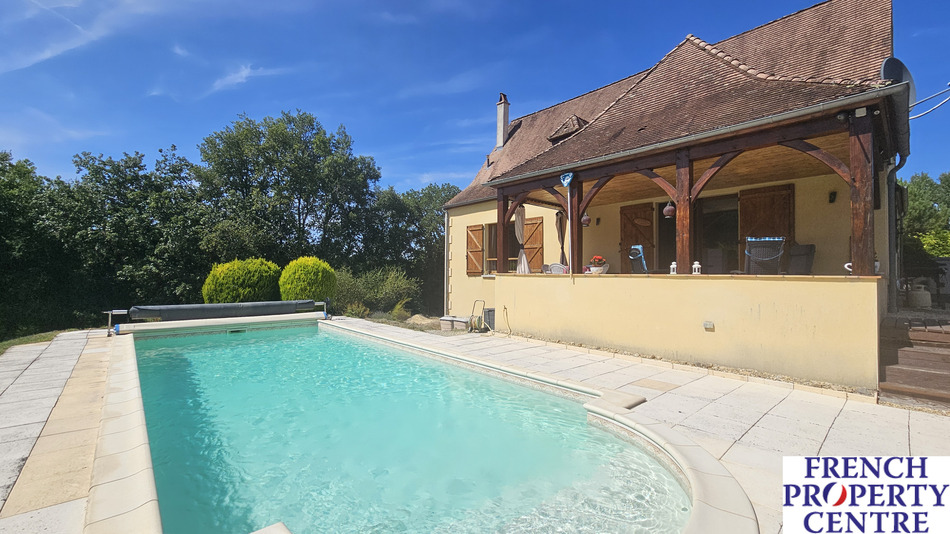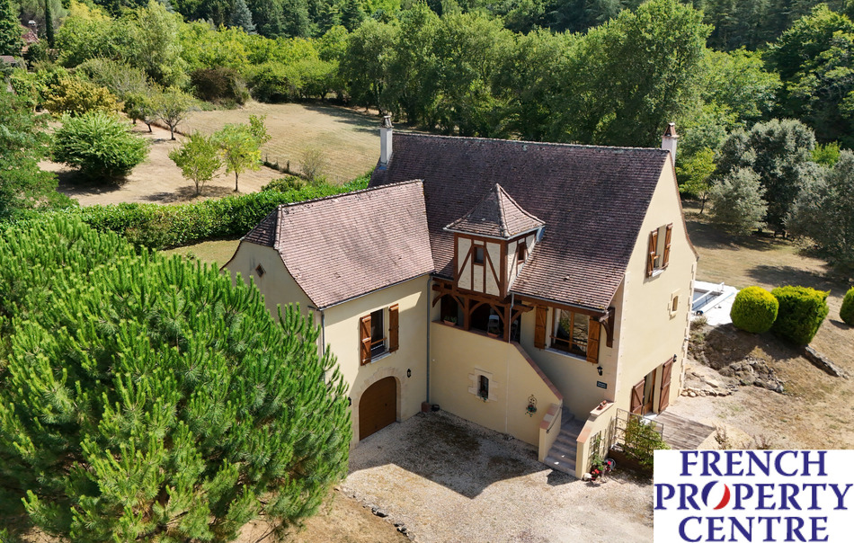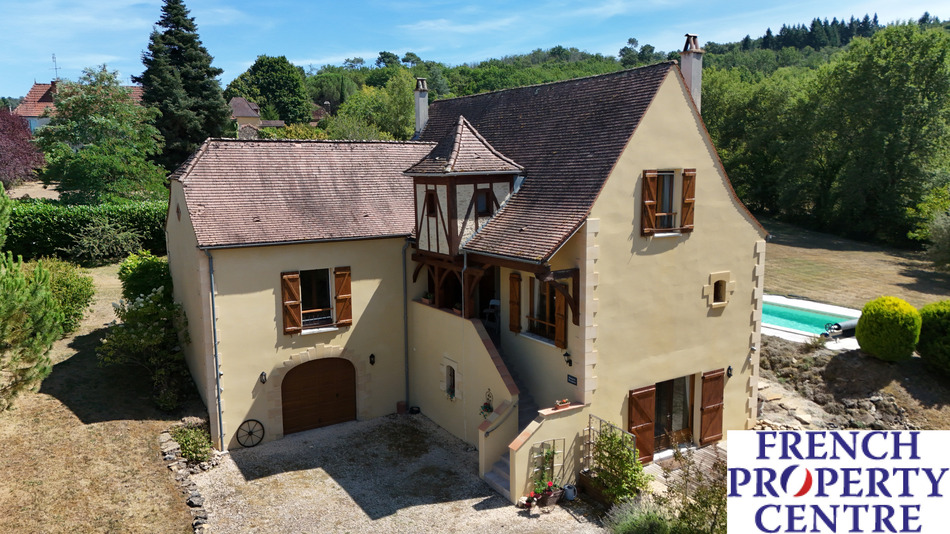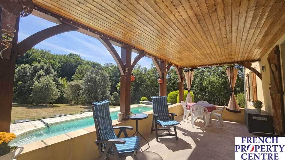 This house was designed exceptionally well by an architect(2010), it comprises 4 large bedrooms, one on the ground floor with its own shower room and a mezzanine leading to the bedroom upstairs. Another shower room, 1 bathroom, 4 toilets. This bright, spacious family home breathes harmony. Made with high quality materials, with stunning exposed oak beams and solid wood parquet flooring, underfloor heating with heat pump. South facing view from the terrace onto the swimming pool with its lovely spring rockery and large garden. Calm, serene location, 8 minutes from Le Buisson de Cadouin with all amenities schools and also a train station. A large beautiful kitchen/dining room leads to a living room with a wood burner. Downstairs there is a "granny flat" (bedroom, bathroom, kitchen/diner leading out onto the terrace) further more, a laundry room, wine cellar, garage and workshop. A well thought out house that would make a great year-round house or a large holiday home !
