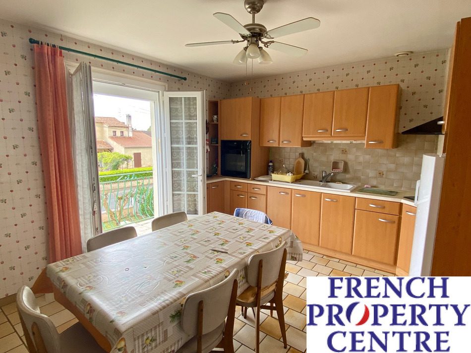 House with basement of approximately 123m2. Very bright including 3 bedrooms, living/dining room, kitchen and bathroom upstairs. On the ground floor an entrance with staircase, summer kitchen, bathroom, living room, hallway, and garage. Double glazing, mains drainage and outbuilding of approximately 20m2 on a fenced garden of approximately 870m2. The village is in walking distance and Bergerac 10 minutes drive.