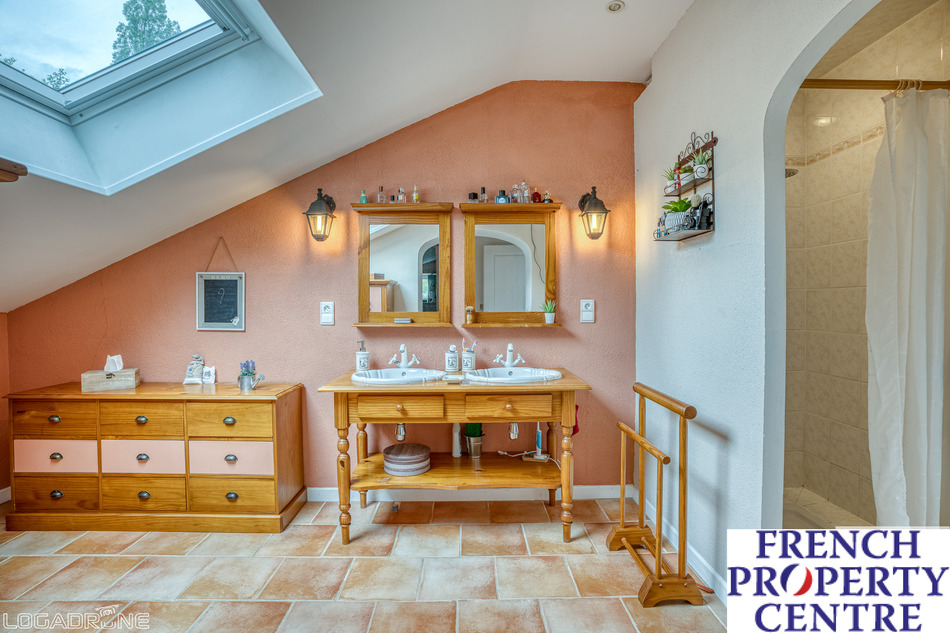 - A second house of 135m2 of living space with 3 bedrooms, and a spacious living room as well as numerous adjoining outbuildings (professional kitchen, workshop, garage, etc.)