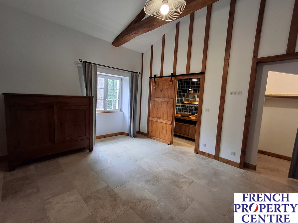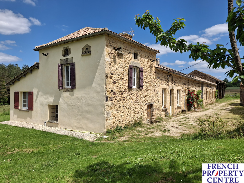 in a peaceful and very private setting, old 216m2 stone farmhouse that has been completely renovated offering 4 bedrooms, spacious and light reception room comprising fully equipped kitchen and cathedral roof living-room / dining-room and 3 shower-rooms with toilets. Adjoining outbuildings offer a cellar, hangars and lean-to as well as pigsties, a garage and a workshop. On approximately 13 acres of land mainly composed of meadows and 1 hectare of wood. Comes with a pond and a small lake, only 9mns driving distance from Monpazier and 13 from Belves. ideal for nature lovers.