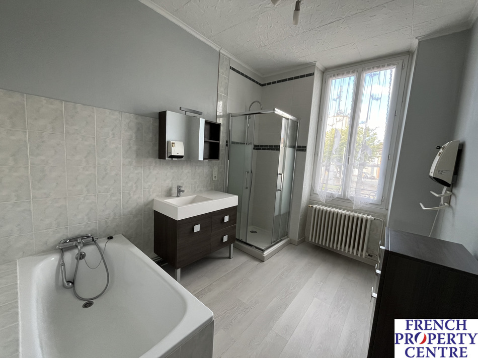 in the Bastide town of Castillonnes with it's weekly market a spacious 162m2 town house consisting of a livingroom with fully equiped open kitchen 4 bedrooms, an office, bathroom (bath and shower) and separate toilet. Very comfortable home with a garden, a covered terrace, a cellar, double glazing, mains drainage and heat pump heating. it would be possible to convert the attic into an additional bedroom with a bathroom. This property also offers you the possibility of making a commercial investment with the groundfloor "shop". Walking distance to all amenities (shops, schools, cafe restaurant, cinema, etc.). A must see !