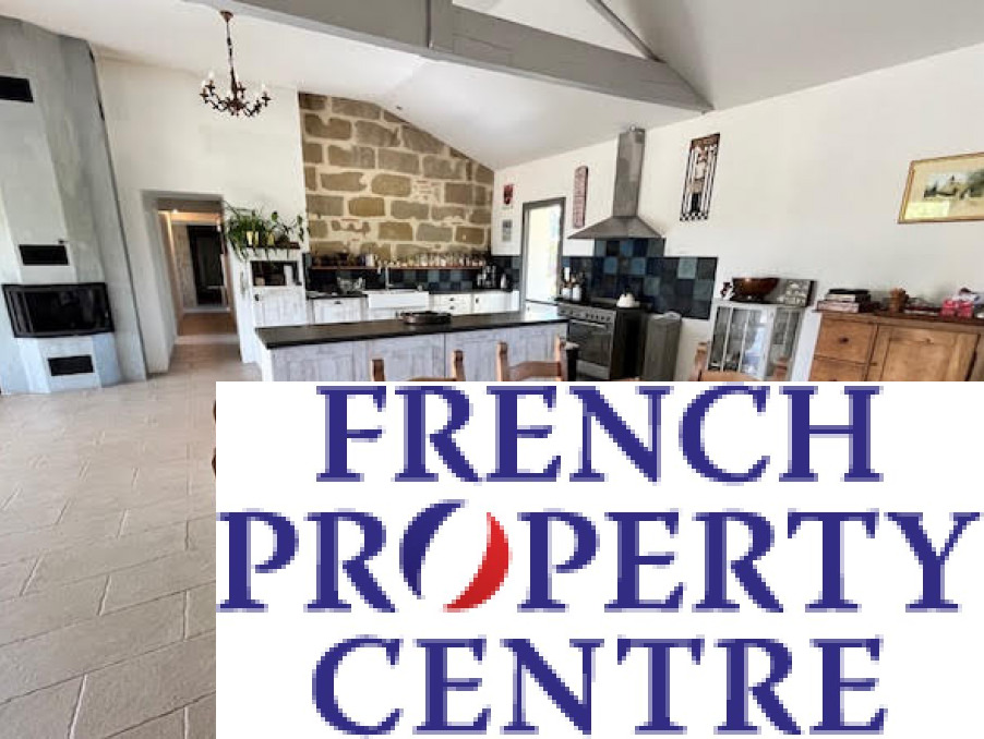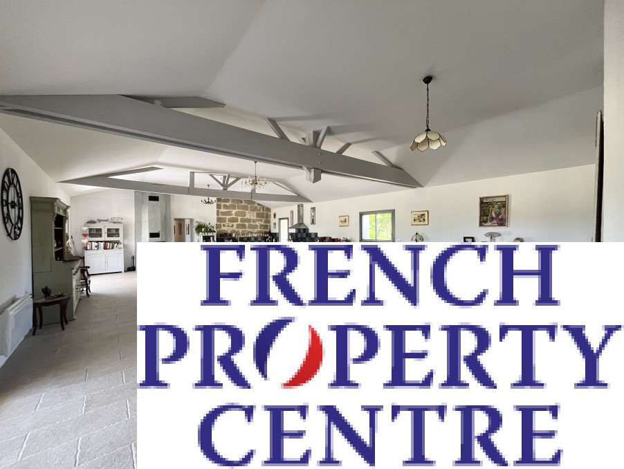 This tastefully renovated property offers a light and spacious open plan kitchen, dining and living area with cathedral type ceiling and exposed beams. it has both an open fireplace as well as an insert woodburner, cleverly vented to heat the house as well as conventional radiators. Two sets of sliding glass doors lead onto a large covered terrace overlooking the landscaped garden with a variety of fruit trees. The property which is entirely double glazed has 4 double bedrooms, bathroom, shower room, 2 separate WC's and large utility room. A garden of 3000m2 surrounds the whole property with room for a pool if desired.