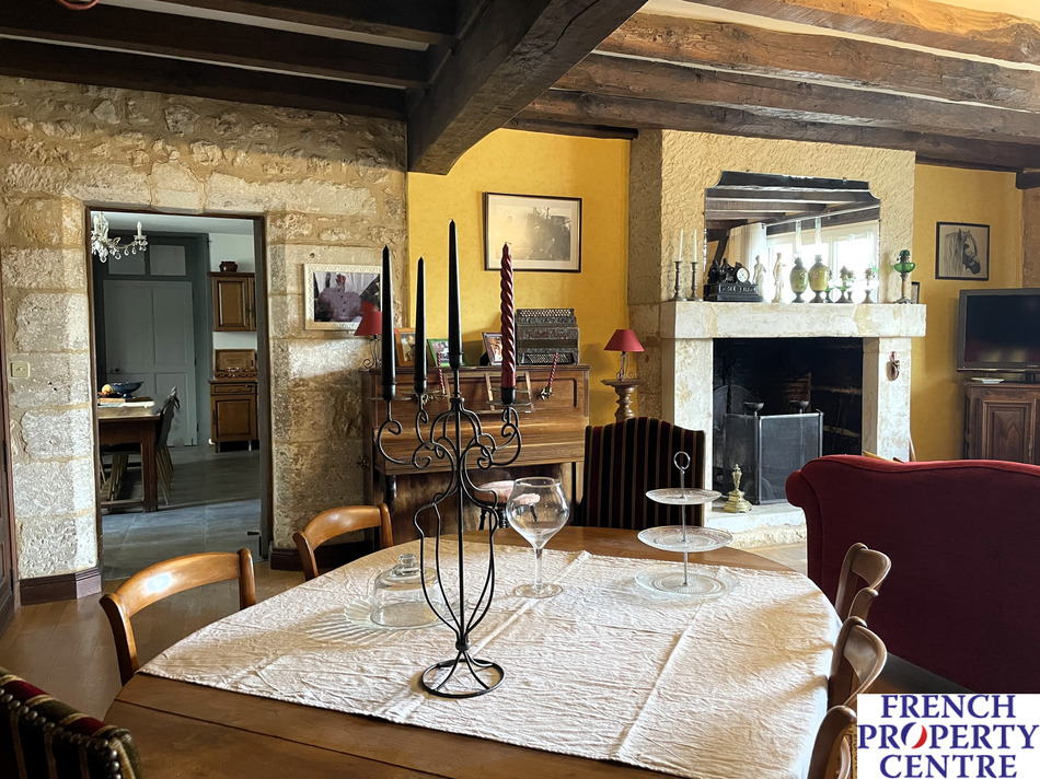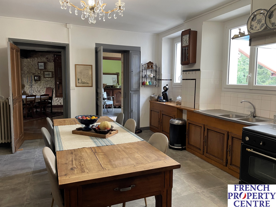 A rare pearl ! This single-storey stone house offers authentic charm, a magnificent living room with stone fireplace, 4 spacious bedrooms, an equipped kitchen, an office and a landscaped garden with mature trees and swimming pool. Stone barn of more than 100 m2, hangar of 200 m2 and a beautiful workshop of around 70 m2 offer multiple possibilities. ideally located within walking distance of the village, you will enjoy the tranquility of the countryside while remaining close to amenities. The house is equipped with double-glazed joinery and oil-fired central heating. Don't miss this unique opportunity.