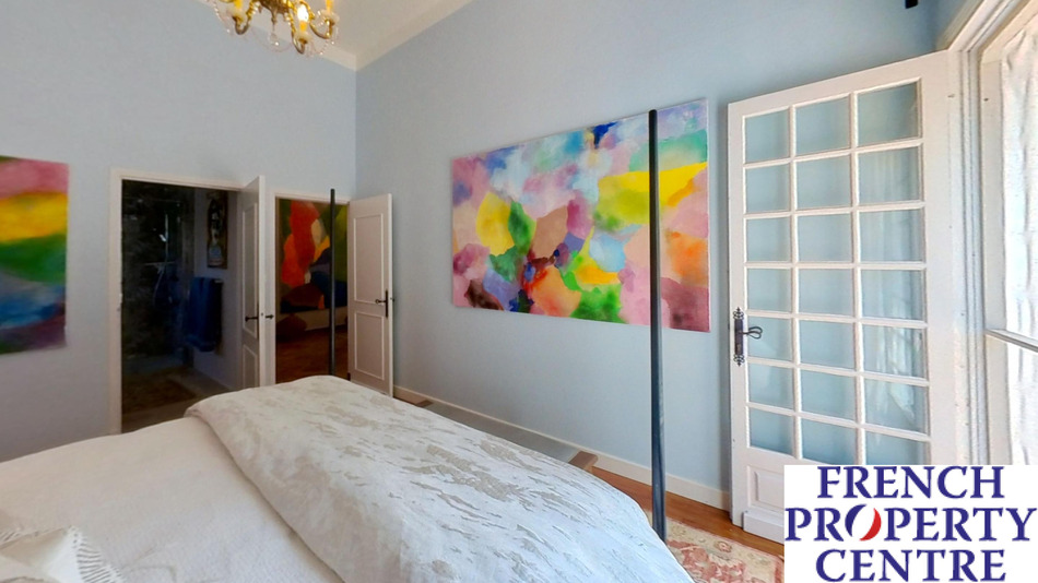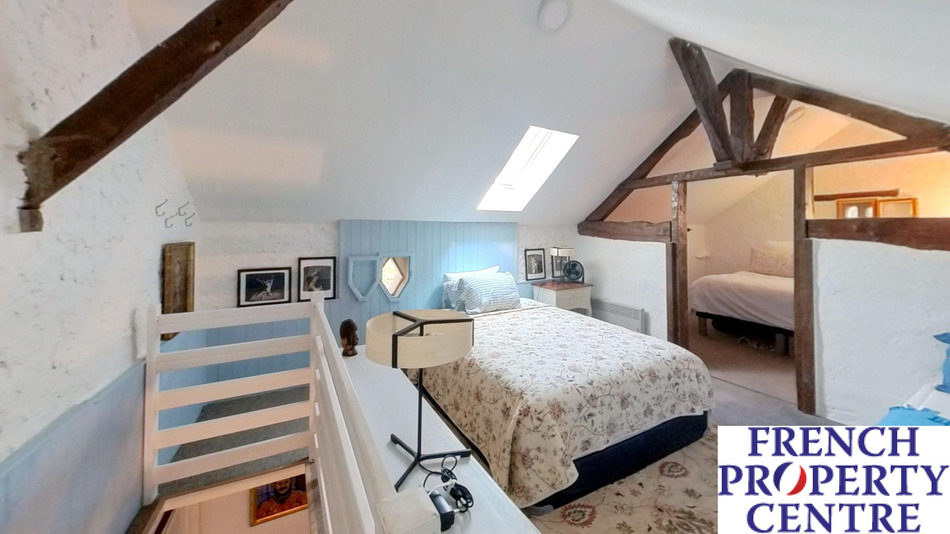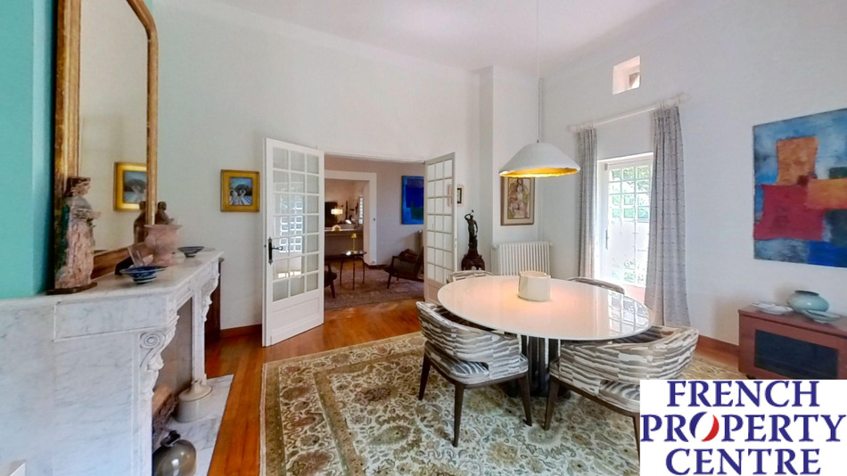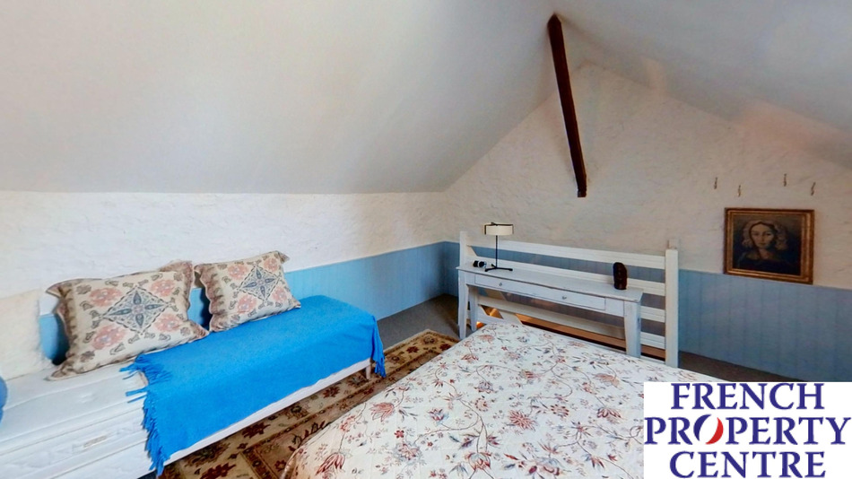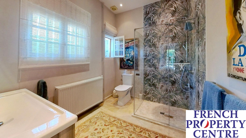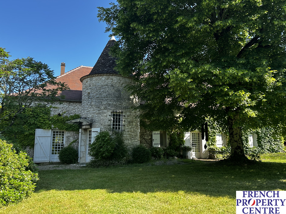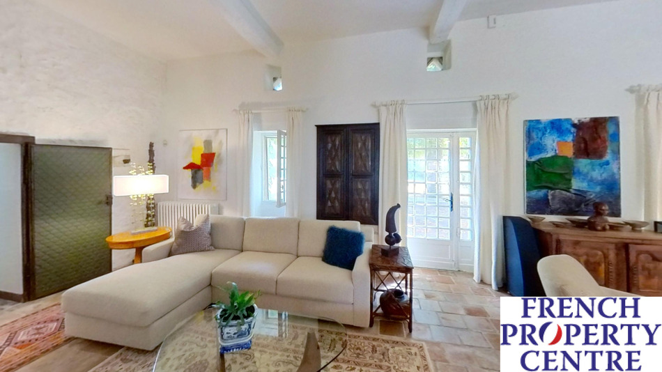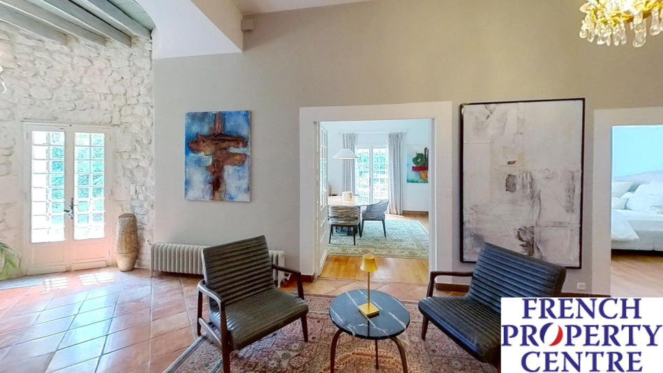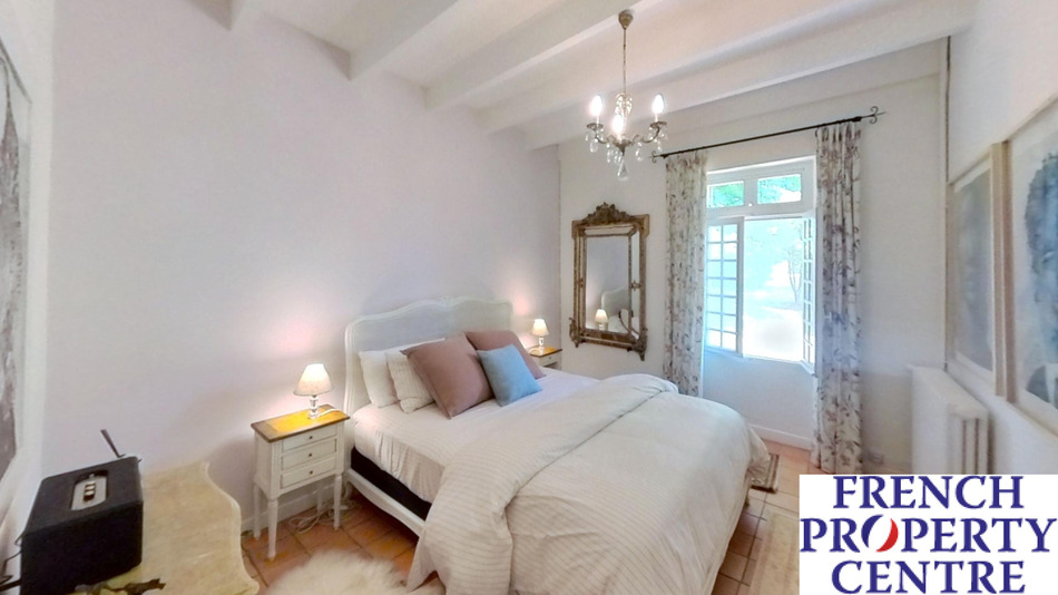 A most charming and characterful fully renovated stone house situated in a peaceful, secluded and elevated location with beautiful surrounding views. Approached via a long private drive through wrought iron double gates leading to the main house: comprising of a large entrance hall, 49m2: Living room with period stone fireplace, modern fitted kitchen, dining room, main bedroom with en-suite dressing room and shower room, 2 further bedrooms and a bathroom/WC all on one level. There is a large attic space which could be converted into additional habitable space if required. The detached pretty guest house incorporates an open plan sitting/dining/kitchen, Shower room, Seperate WC and a 1st floor double bedroom. The ecourie: could house 4 horses or other animals, it has electricity and water. it also has an old bread or pizza oven. The grounds are like a park with numerous trees and shrubs, enclosed walled courtyard, swimming pool and terrace and a Gym. The terrain is 50 000m2. Habitable area 203m2.