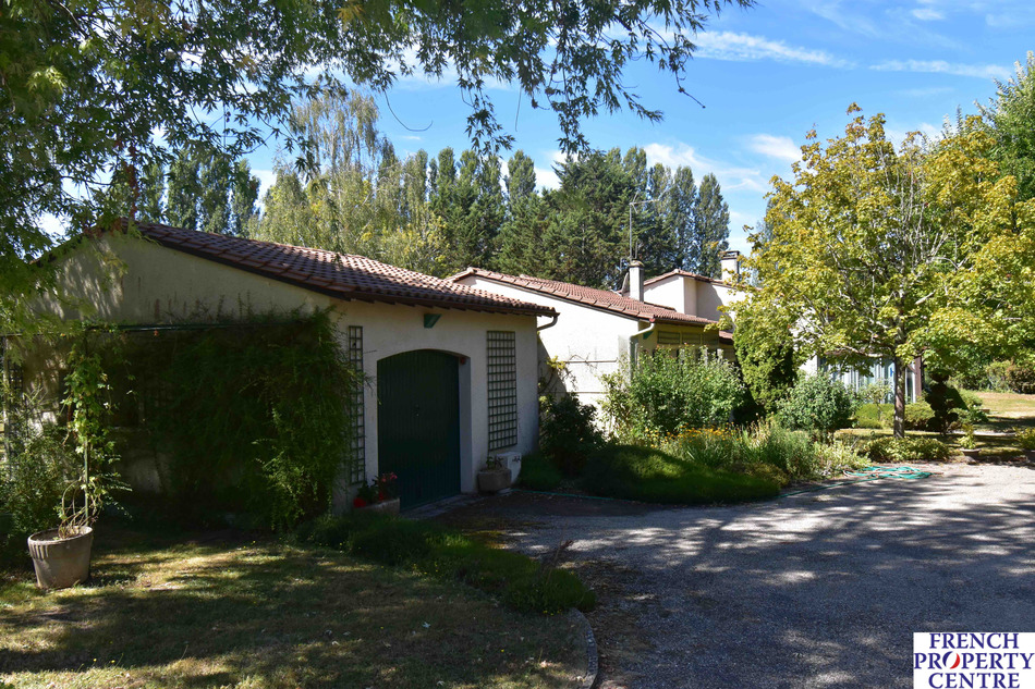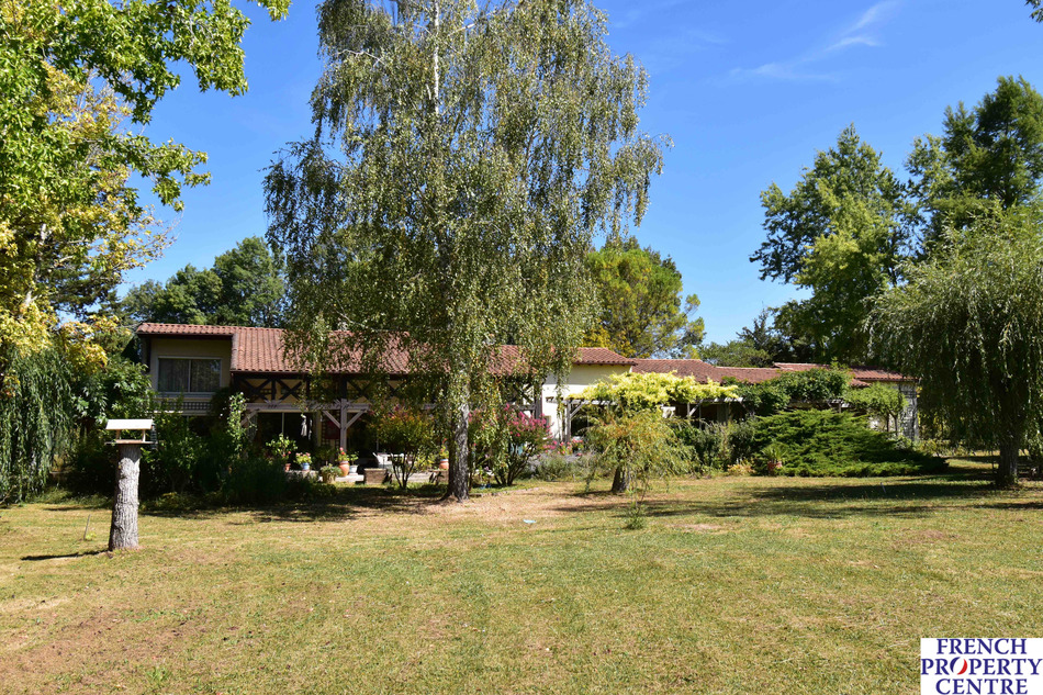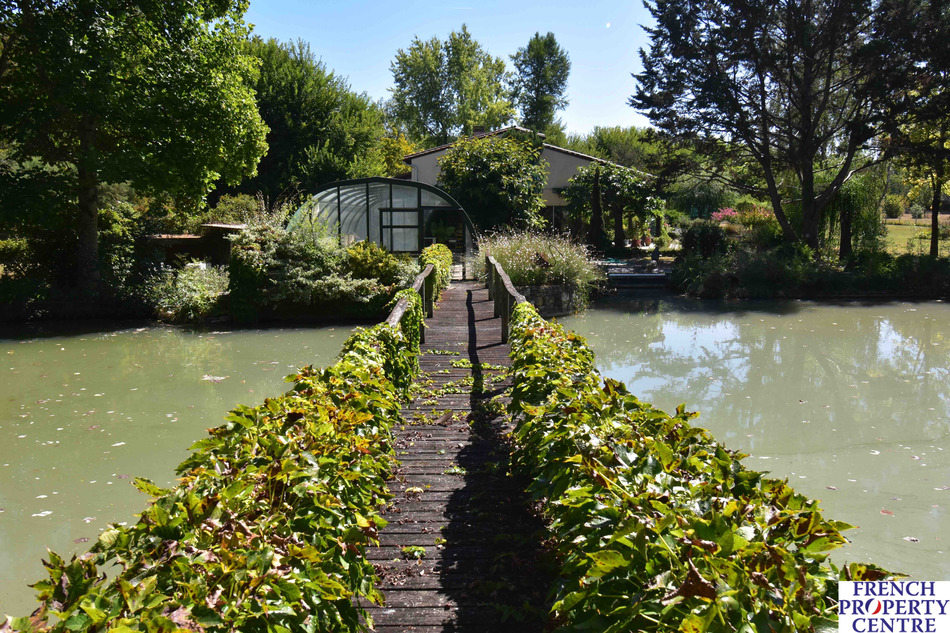Stunning contemporary house with lake and integral swimming pool at the end of a private driveway in a haven of peace close to the exceptional village of issigeac, with 225m2 of living space comprising large bright lounge, kitchen, mezzanine, three bedrooms, large terrace, conservatory, cellar, garage, several outbuildings and 3.3 ha of garden and meadows.
