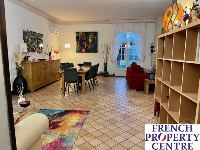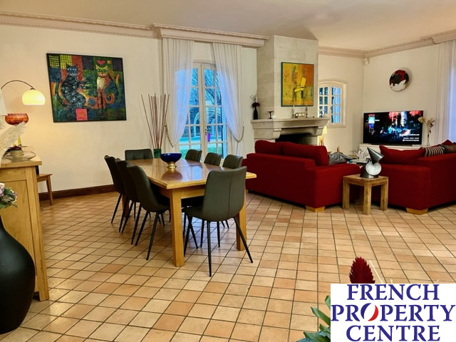 Situated in a privileged area of Bergerac with direct private access to the Dordogne River. Surrounded by 2.5 acres of enclosed garden with swimming pool and tennis court. 270m2 habitable area comprising of a large living room with open fireplace and french windows leading directly to the terrace and the pool. A fitted kitchen, two ensuite bedrooms and two other double bedrooms plus a bathroom. Upstairs, a 70m2 room currently used as a study and reading area. Reversible air-conditioning, central heating and mains drainage; fibre optique internet. Cellar with boiler room and wine cellar on the lower floor. Garage with utility room and workshop.