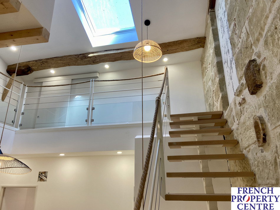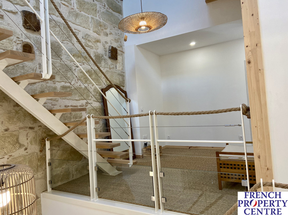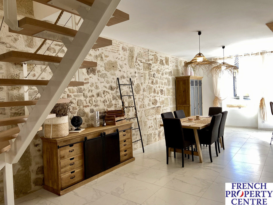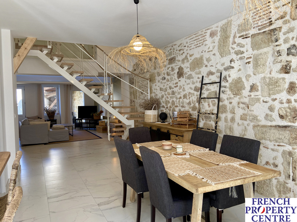 On the outside, it's a traditional village house, but inside... what a lovely surprise awaits you! Restored with great care and attention to detail by its artisan owner, this light-filled contemporary space offers 4 comfortable bedrooms, a spacious 70m2 open-plan living area, and a 20m2 master bedroom with en-suite shower room. Outside, you can park up to two large cars (or, with a little adjustment to the height of the gate, you can even park a motorhome). Double glazing, dual heating/air conditioning, full insulation and quality fixtures and fittings are also part of the package. All in all, an atypical and highly desirable house located in a lively village with all shops - don't miss out on it!