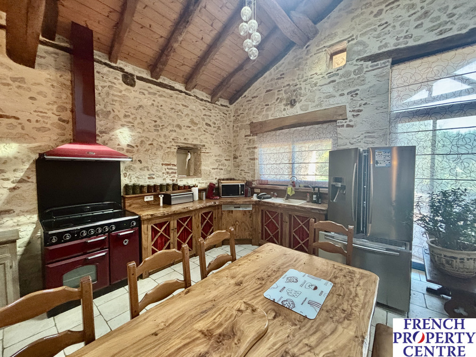 A 10 x 5 metre swimming pool, a lovely 60 m2 covered terrace, a laundry room and a pool house complete this barn, which was renovated in 2008. Underfloor heating is provided by a heat pump.