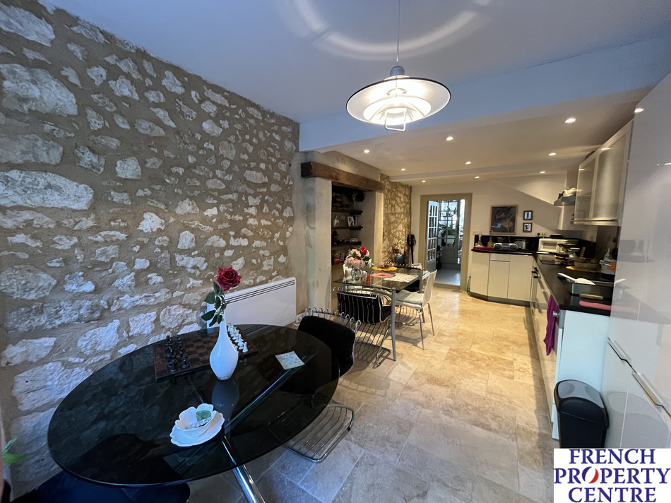 Village house comprising on the ground floor a fully equipped kitchen (oven, electric hob, dish-washer), a light living-room and a toilet ; on the first floor, 2 bedrooms including a master bedroom with a bathroom and a shower-room ; on the 2nd floor, a large reception room with corner kitchen. Very comfortable house with reversible air conditioning, wood burner and double glazing. Lovely tiled terraceand a cellar. Walking distance to all services(supermarket, bakery, restaurants, schools) in the centre of Castillonnes and only 13km from Villereal and 26km from Bergerac.