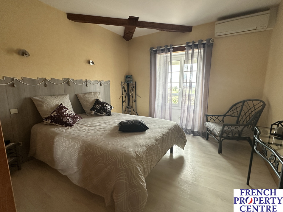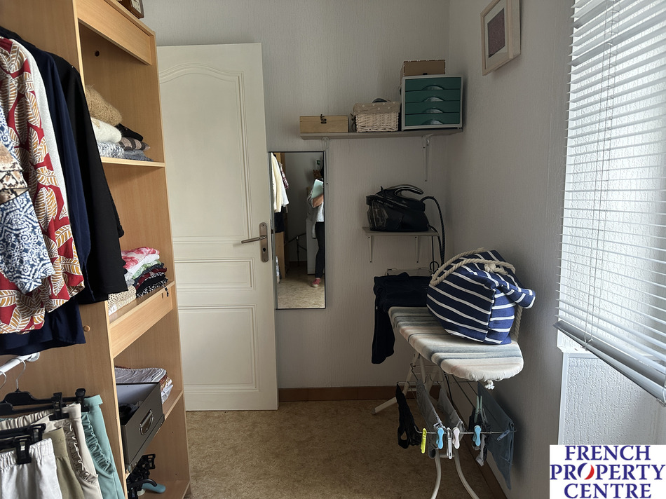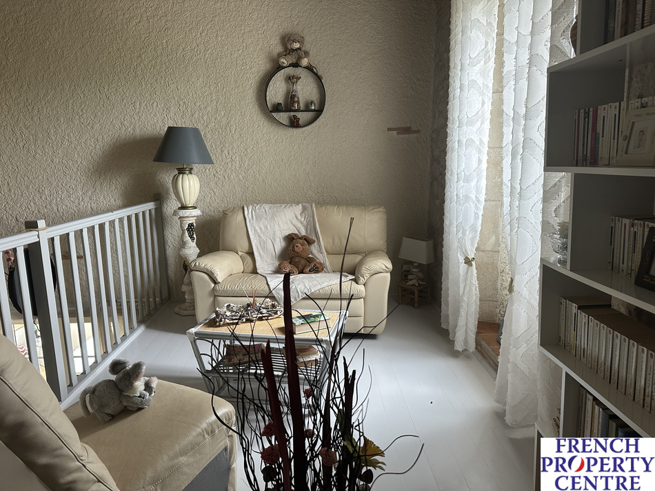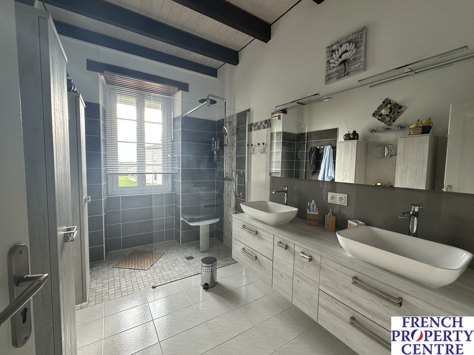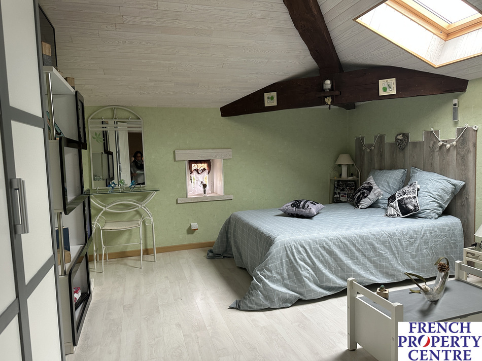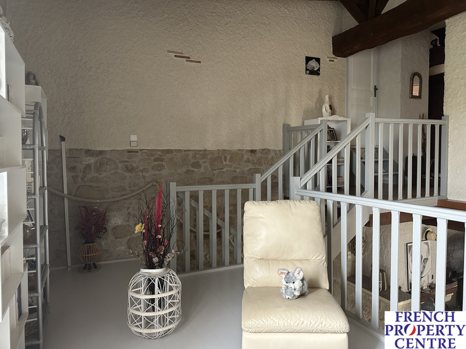 Stone house in the countryside but not isolated. This house comprises on the ground floor a large open plan kitchen, dining and living room, an office that could be used as an additional bedroom, Shower room with italien shower, separate wc, and laundry room.