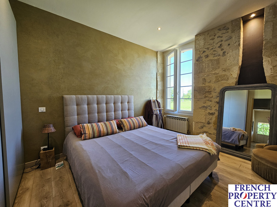 Beautiful renovated stone property with outbuildings, a swimming pool, and an animal boarding hotel. The main house has been renovated in a chic and modern style. it includes 4 beautiful, bright bedrooms, 2 spacious living rooms, 2 shower rooms, a pantry, a kitchen, a laundry room, 2 toilets, and an office.