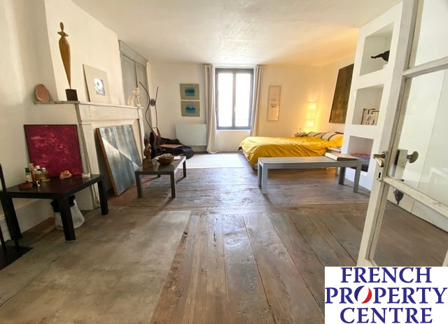 This incredible property presents more like a work of art or art gallery. The property is almost hidden, tucked away right in the centre of the historic and picturesque village of Belves but the property itself is deceptively large (approx. 300m2). Accommodation on the upper floor comprises a large open plan kitchen / diner and a separate sitting room and a master bedroom, with ensuite bathroom, both with doors opening onto the upper terrace wth views over the rooftops and open countryside across the valley beyond; there is also a further large bedroom with ensuite shower room and a separate WC. The whole lower ground floor is like a gallery (which could easily be converted into habitational space) with a large dining / entertaining room and a further sitting room with access to a dediacted workshop /art studio area. All the rooms on the lower ground floor open up directly onto the garden. Externally the property offers a terrace with views over open countryside across the valley beyond and a private courtyard with garden beyond, another large independent studio, a separate summer kitchen with WC, outside shower and a double garage. This property is a feast for the senses and must be seen to be fully appreciated.