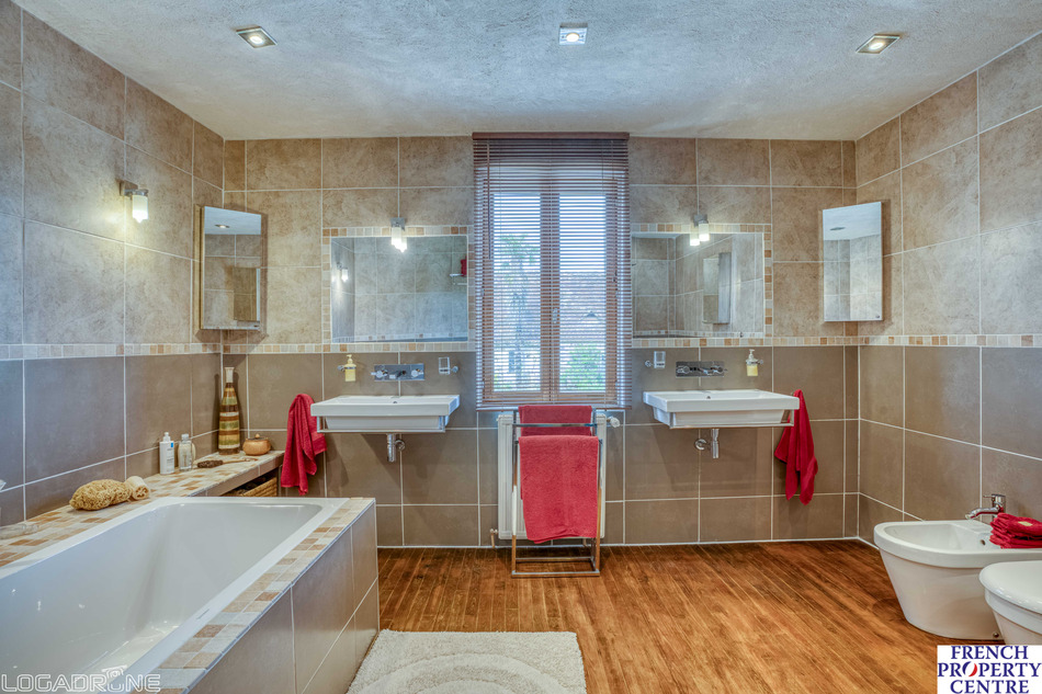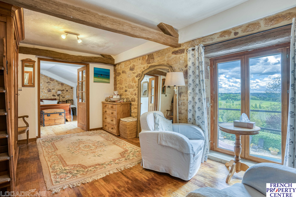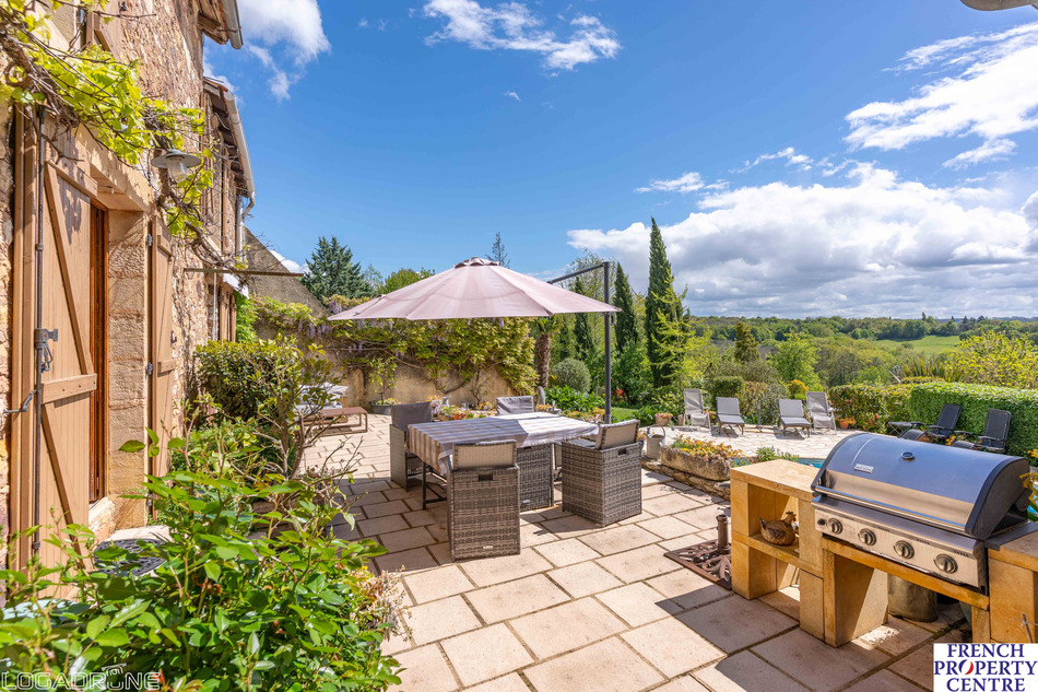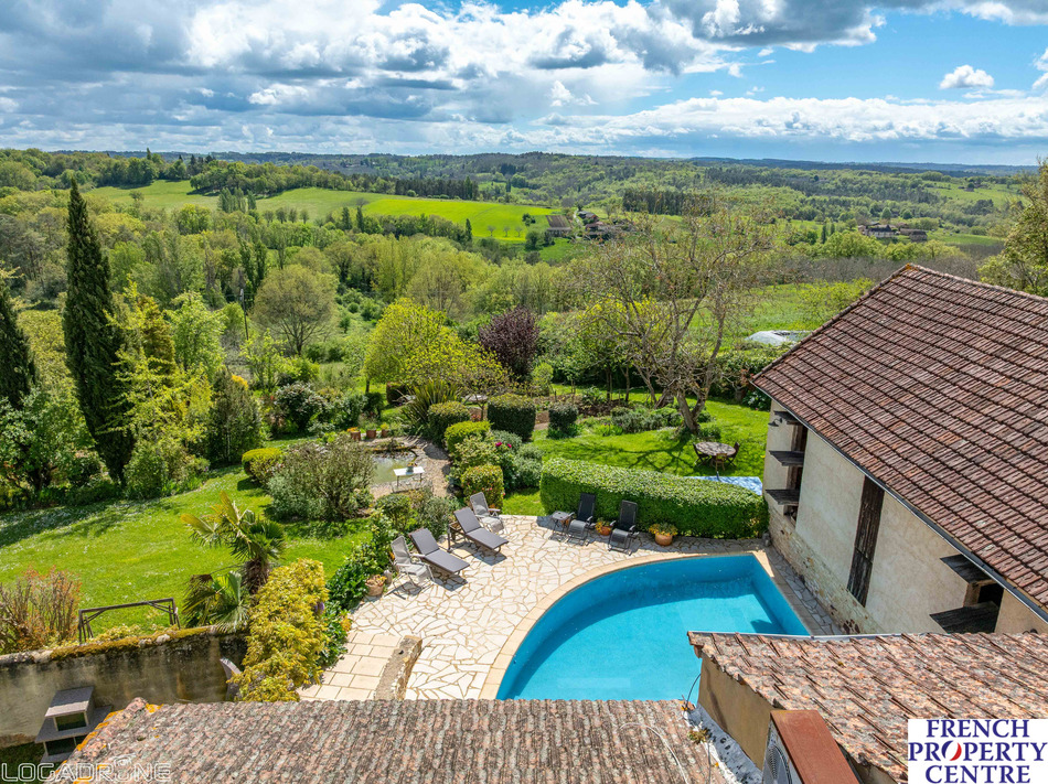 Large village house on 1.15 hectares with exceptional breathtaking views at 10 min from Belves and St Cyprien. Complete with an elegant mosaic-tiled swimming pool overlooking the garden and the full valley around. There is a large tabaco barn of approximately 70 m2 (760 sq ft) with a relaxation area. The house comprises 4 bedrooms (2 upstairs and 2 bedrooms in the attic), and a ground floor office can also be used as a guestroom. There are 3 bathrooms/showers, 4 toilets, a laundry room, a workshop, and a room with a separate entrance. There is a large living room (48 m2) with a high-performance wood-burning stove on the first floor. The kitchen and dining room opens onto a superb terrace. A extra private sauna guarantees extra relaxation....MUST ViSiT !