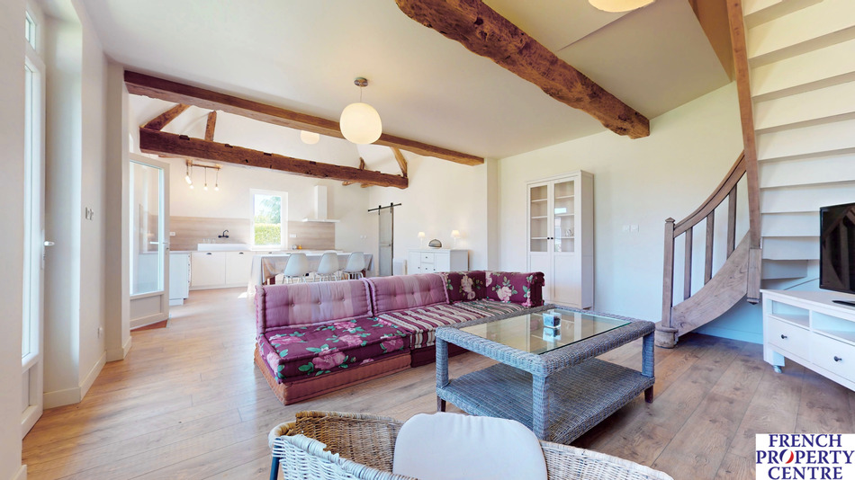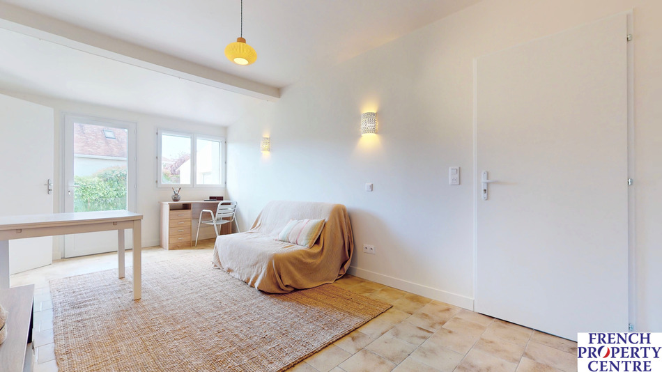 House with three bedrooms on one level and an office upstairs in Bergerac, close to shops, schools, middle schools and high schools, on a 1000m2 garden in a quiet residential area. For old stone lovers, between rustic and minimalism, this renovated farmhouse offers 155m2 of living space: beautiful 48m2 living room with open kitchen and wood burner, second 25m2 living room with wood burner, 3 bedrooms, one with en suite shower room/WC, and two with private toilet, one bathroom / WC, a laundry room, an office on the first floor and an attached garage, all in the middle of a 1000m2 enclosed garden with electric gates. Fiber, mains drainage. A must see!