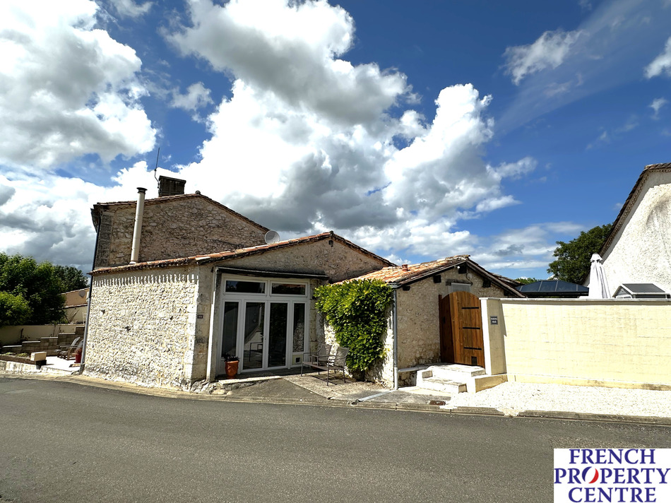 A light and bright village house comprising of: entrance with fireplace and old stone sink, 2 ground floor bedrooms, ground floor bathroom/wc, upstairs ensuite bedroom, fitted kitchen and a large sitting/dining room and 3 separate terrasses. Opposite the property is a garden with an outbuilding and a garage. ideal lock up and leave or full time home. Completely ready to move into. Situated in a popular village with shop and restaurant. Habitable araea: 124m2. Terrain: 773m2.