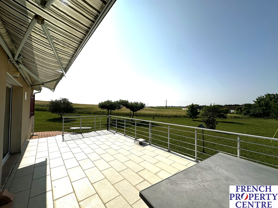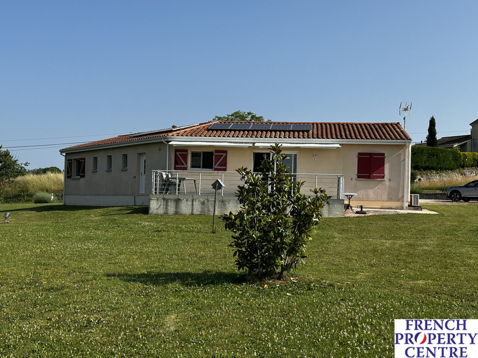 A well presented modern detached bungalow built in 2006 with solar powered electric radiators and hot water, double glazing and insulation. The property is located on the edge of a village with a local shop and restaurant, just 5 minutes away from Eymet and 20 minutes to Bergerac. The accommodation comprises: open plan living/dining room and kitchen, laundry room, large utilty/storage room, study, 3 double bedrooms, shower room and 2 seperate w.c's. Habitable surface: 108m2, Terrain: 2 524m2.