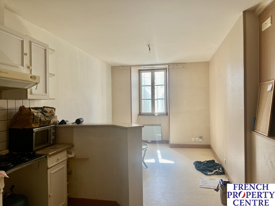 EXCLUSiViTY in Monpazier: Building comprising rented commercial premises of approx. 28m2 and a rented T2 flat of approx. 64m2, comprising a ground floor entrance with laundry and storage space. The flat is on the first floor and comprises a bedroom, a kitchen opening onto the living room and a shower room with WC.