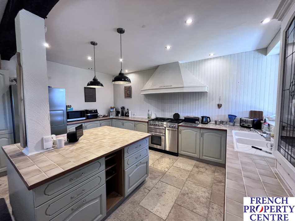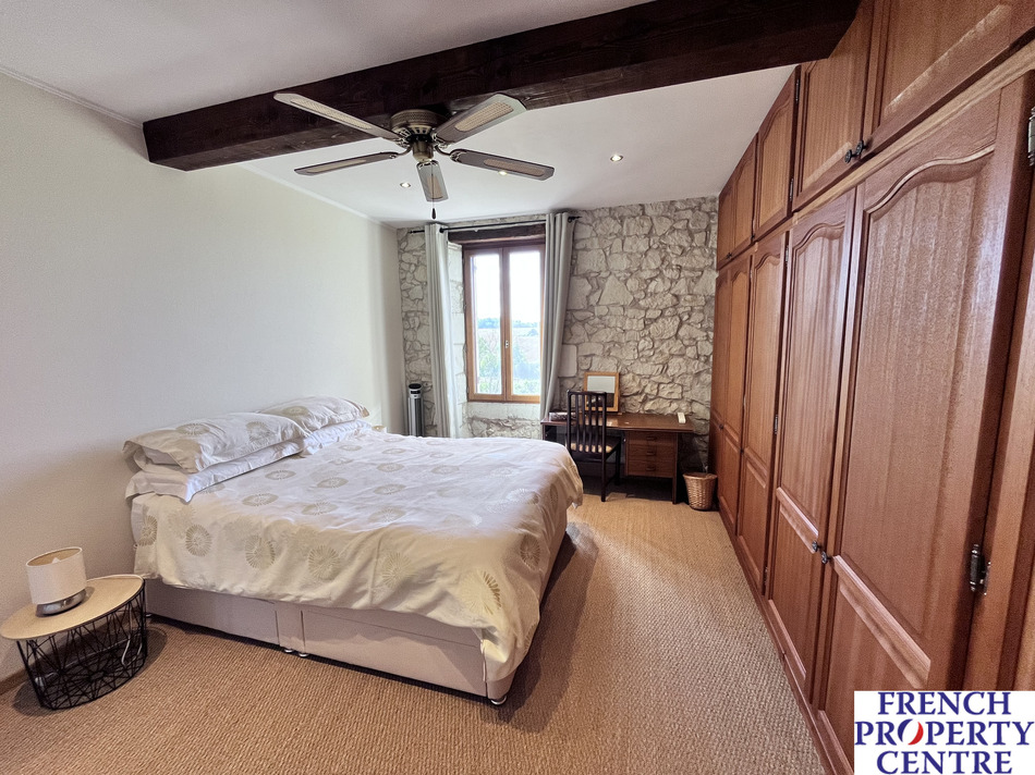 Reached by a small country lane and Exclusive to , this beautifully renovated stone property with a guest cottage/gite, outbuildings and swimming pool, sits in an elevated position with superb panoramic views over the surrounding countryside.