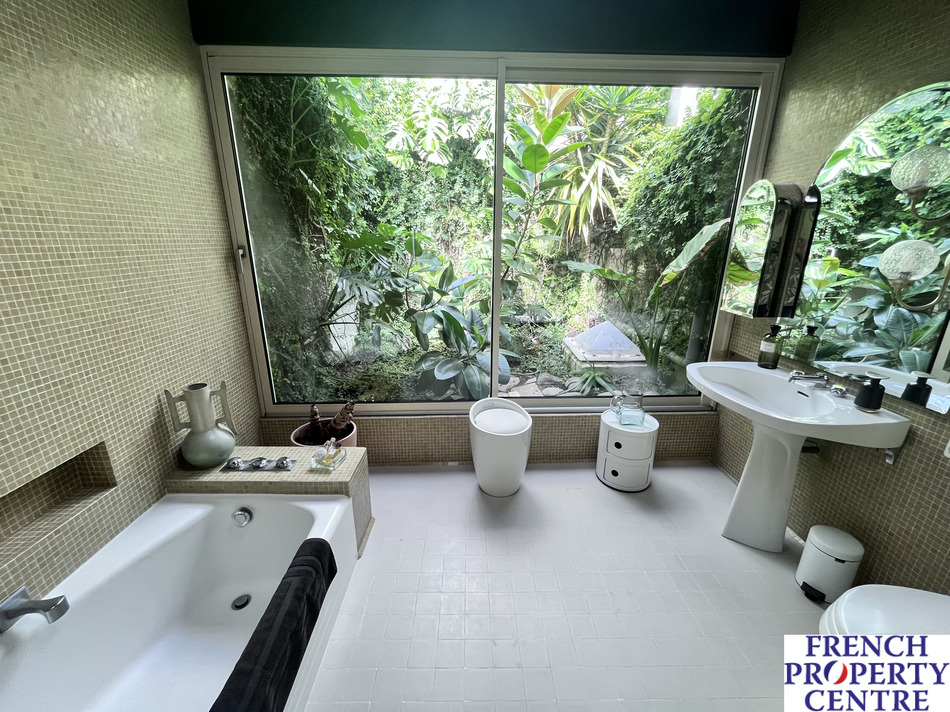 Upstairs, the master suite includes a balcony overlooking the river, with a private bathroom and dressing room. Four additional bedrooms, a study, large dressing area, and three bathrooms (one with a living terrarium) offer both comfort and style.