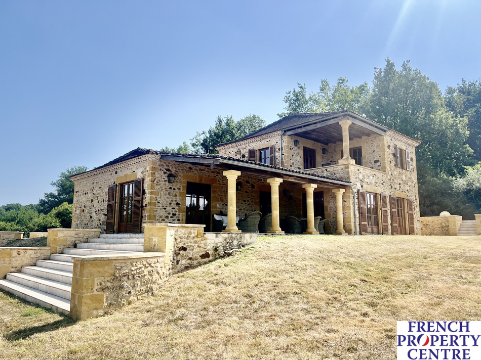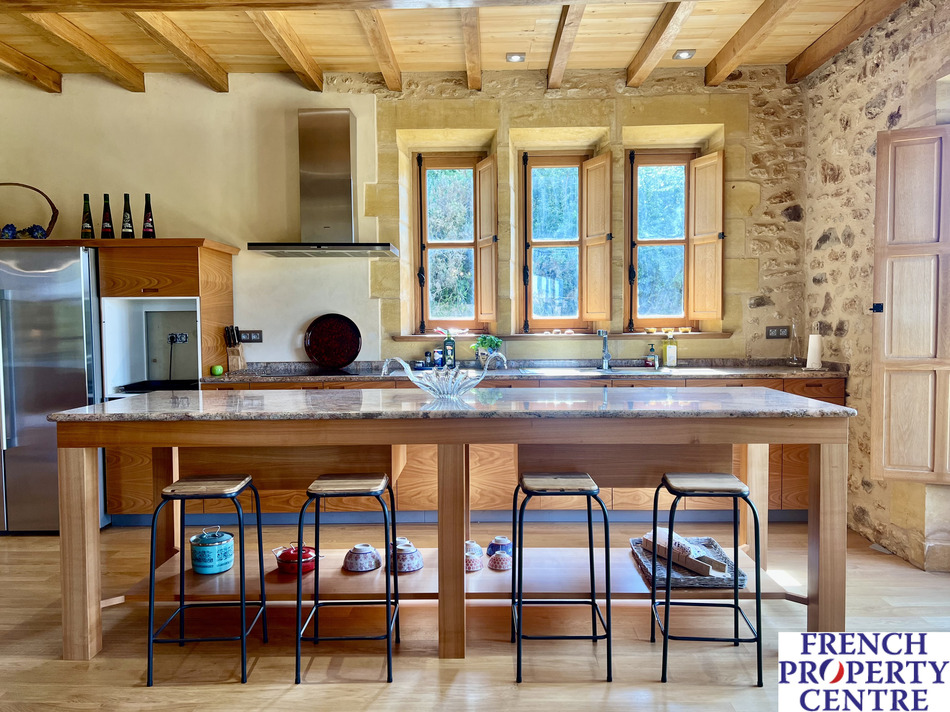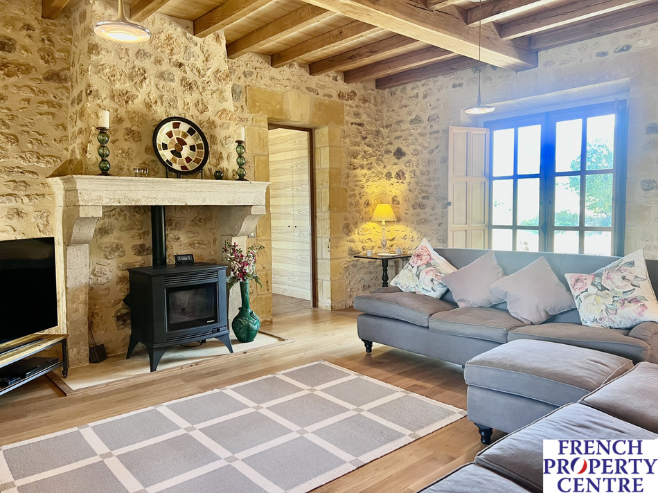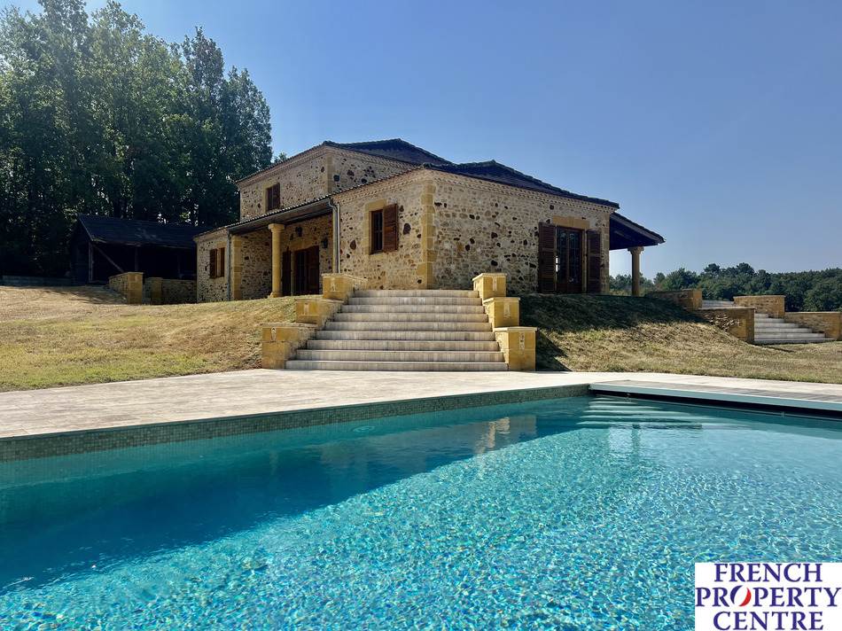 EXCLUSiVE iN BiRON: Come and discover this superb stone property with swimming pool, stunning views of Biron castle and outbuildings to renovate, in a quiet area close to the shops and services of the surrounding villages. The ground floor of the 164m2 house comprises a large living/dining room with wood burner (82m2), an open-plan fitted kitchen, a storeroom, a master suite with dressing room and private bathroom, and a separate toilet. The first floor comprises two bedrooms with covered terraces, a shower room with WC and a storage room. The covered outdoor terrace on the ground floor is ideal for the summer months. The swimming pool (10x5) is covered by an electric roller shutter and is heated. There is a carport for one vehicle. The grounds of more than 1Ha 4 are planted with trees, and it is possible to renovate a 66m2 drying shed and an old 130m2 stone house. Combining comfort and authenticity, this property is ideal as a main or second home. We look forward to seeing you soon!