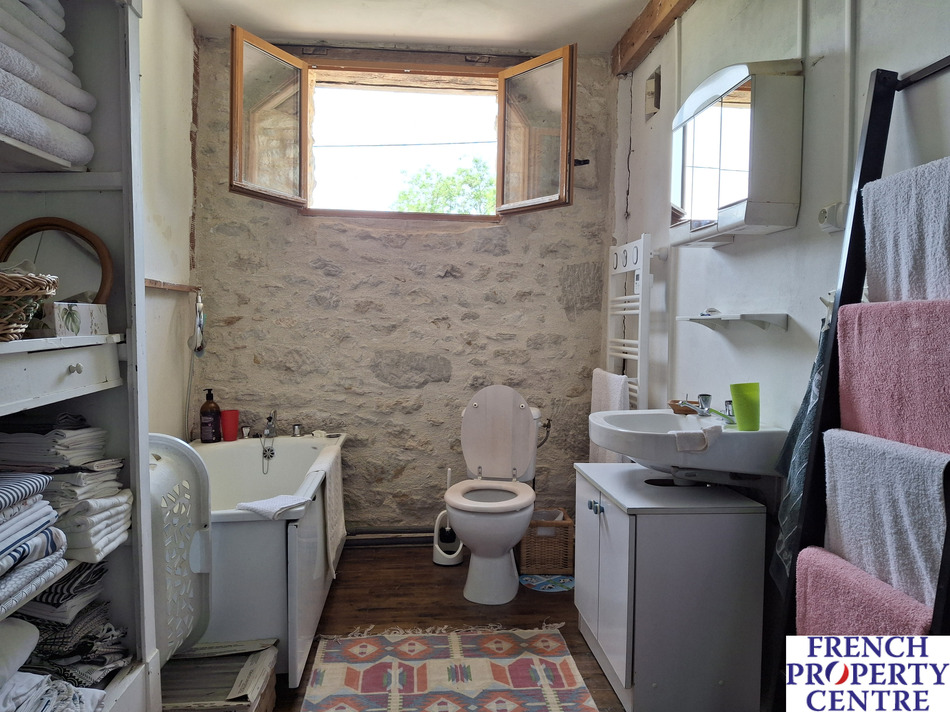 in the heart of a garden of just under 1 acre of land, on the edge of the Lougratte swimming lake, this stone house was renovated over the last 20 years and offers a large 49m2 living-room / kitchen area, shower-room with toilet and a cellar on the ground floor, 3 bedrooms, one of which has a toilet, family bathroom and an office on the first floor. Spacious and bright, it is ideal as a large family or holiday home, within walking distance of 2 schools, swimming lake, restaurant, local convenience store etc. and 5kms from Cancon, 9kms from Castillonnes and 13kms from Villereal. Exclusively with !