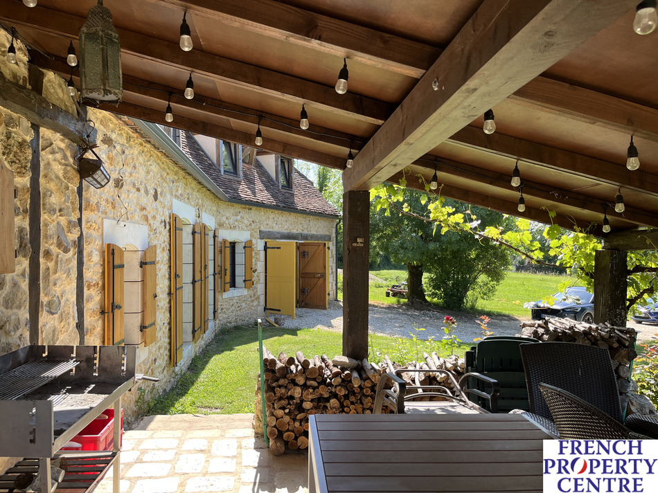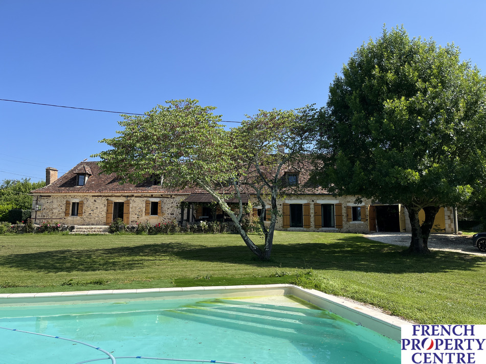 in an elevated position with sweeping views, this classic Perigourdine-style stone house blends charm and comfort just minutes from Bergerac and its airport. Offering 213m2 of living space (137m2 on the ground floor), it features a spacious open-plan kitchen/living area, 4 bedrooms, 2 bathrooms, and an office. A large games room upstairs can be reconfigured into 3 bedrooms. Built in stone with beams and terracotta floors, it includes a modern extension (2016) and upgraded septic system. Outside: 100m2 south-facing terrace, 14x6m heated pool, pool house, double garage, and mature fruit trees. Grade C DPE. Peaceful hamlet location and welcoming community.