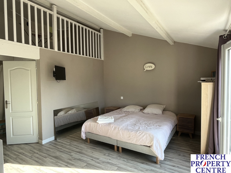 Between tradition and minimalism, it combines charm and simplicity: wood-burner, ceiling fans with summer/winter mode, double-glazed windows, and wooden shutters guarantee economical comfort. Four bedrooms, with their own access to the garden (one with a private bathroom), a bathroom with a walk-in shower, a separate toilet, and a laundry room. The 51m2 living room with open plan kitchen opens onto two terraces and the 8x4m swimming pool (heated, salt-water, with a submerged cover). A great place to spend quality time!