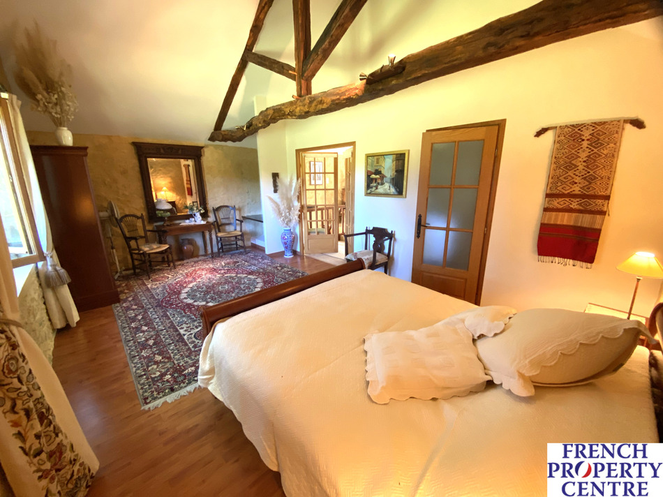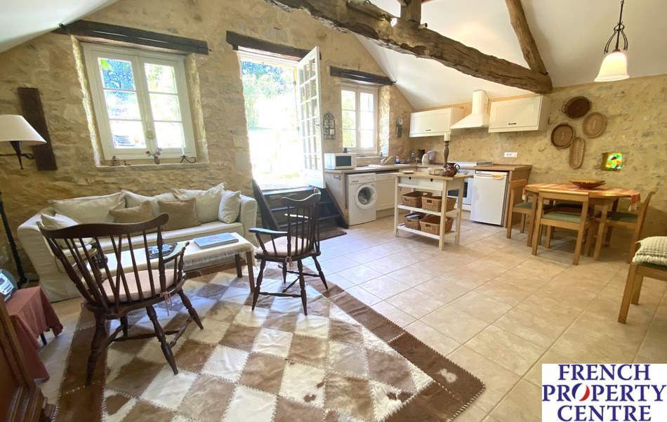 idyllic country cottage with additional maison d'ami set in open countryside with far reaching views. This pair of beautiful and characterful properties offer a wealth of original features and stunning views. ideal as a main home and a separate bed and breakfast or guest cottage. The main house has an open plan layout to the ground floor with a kitchen, large living room with a feature fireplace with wood burner, a downstairs shower room and WC and patio doors to the rear of the living room opening on to an elevated terrace with views over open countryside. To the first floor is a large bedroom with dressing area and vanity sink and a further smaller, mezzanine style second bedroom. The maison d'ami has a downstairs bedroom and shower room with WC. To the upper floor is a large open plan, kitchen/diner/living room and a further large bedroom with its own shower room and WC. The grounds offer various vantage points to appreciate the garden, take in the views or enjoy some al-fresco entertaining.
