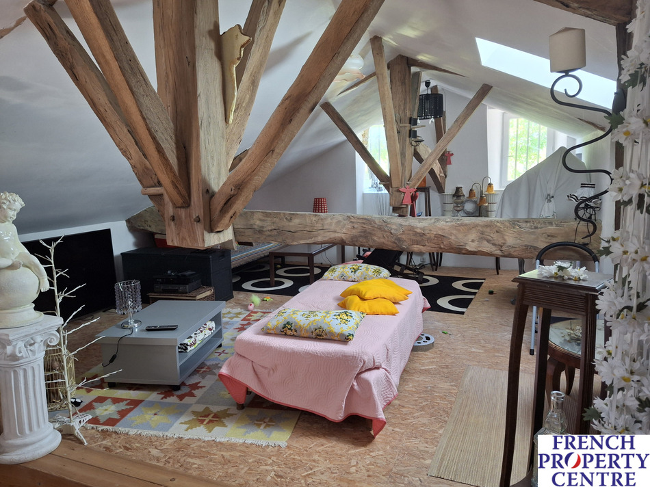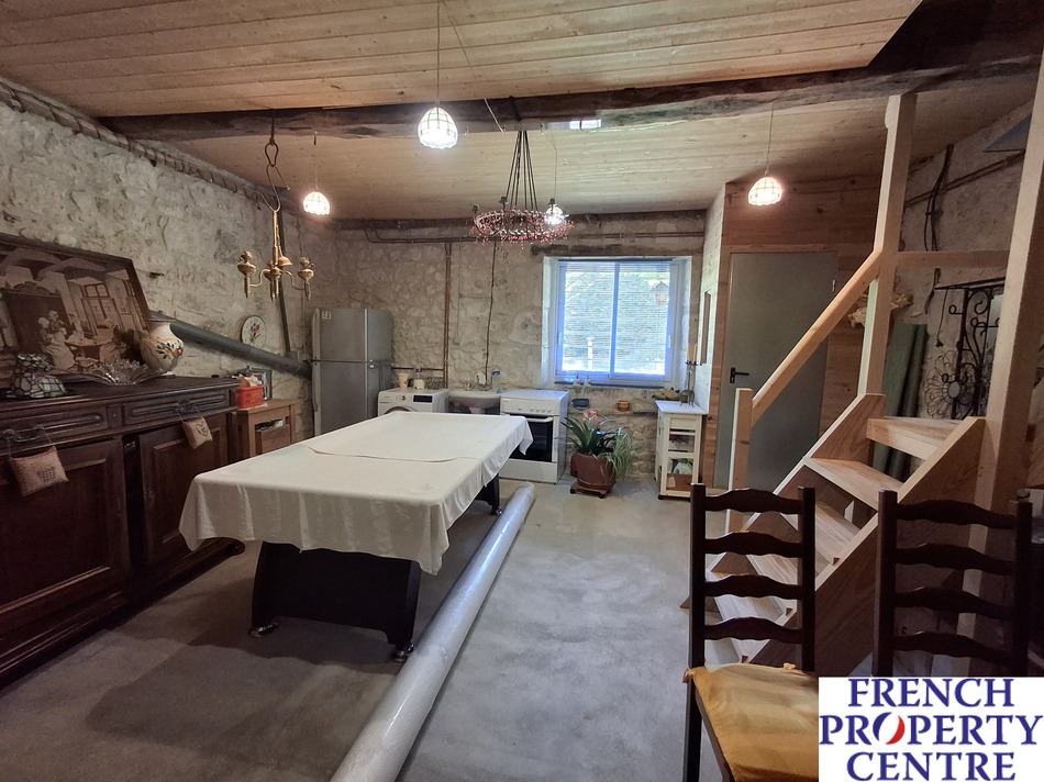 in the heart of a small rural village between Allemans du Dropt and Duras, this stone house offers a 32m2 living room, separate kitchen, 3 bedrooms, shower room and bathroom with toilet on the garden level, a large attic bedroom and toilet upstairs, as well as a large 43m2 room on the ground floor used as a laundry room, storeroom, workshop. 54m2 garage. 2 terraces and an enclosed garden complete this property equipped with a microstation, double glazing and central heating by heat pump.