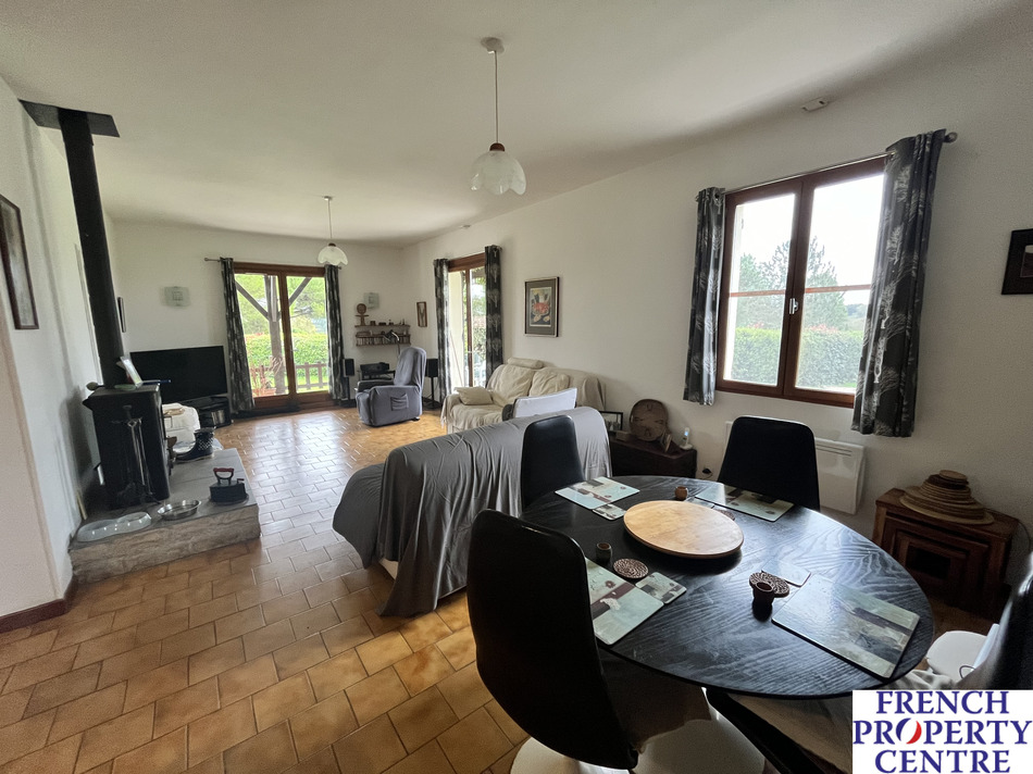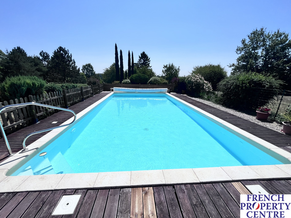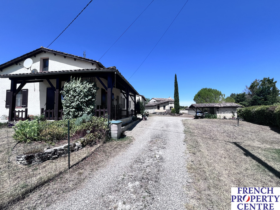 Discover the perfect blend of tranquility and convenience in this delightful countryside house, just 5 minutes from Lauzun and under 15 minutes to the enchanting Bastide Town of Eymet. The main house which comprises of 105m2 on a single level, features an open-plan kitchen, dining, and living area with wood burner, perfect for gatherings. With 3 double bedrooms, a shower room, and 2 WC's, comfort is guaranteed. Additional amenities include a utility room, attached garage, and barn with mezzanine for ample storage. The property boasts a separate 71m2 building (38m2 habitable), ideal for conversion into extra accommodation or a creative workshop/studio (with the appropriate permissions). The property is set on a generous 4000m2 of landscaped grounds, you can unwind by the saltwater swimming pool or enjoy the covered terrace, making it the ultimate outdoor oasis.
