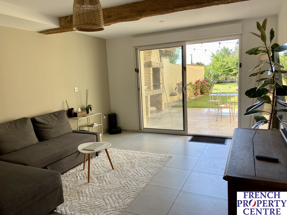 This charming contemporary home enjoys wonderful views not only of its own 700m2 pretty garden at the rear but also of the peaceful banks of the River Lot, at the front.
