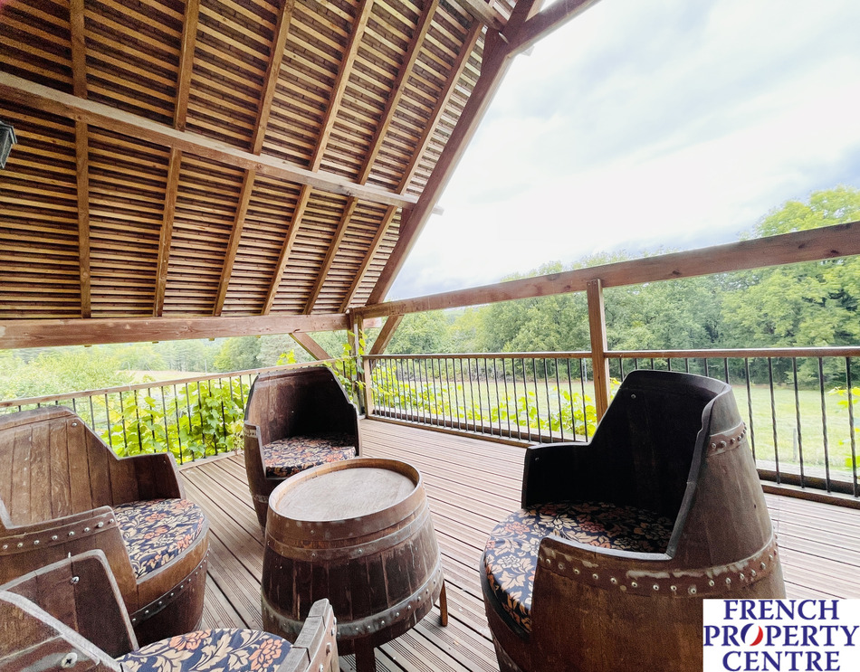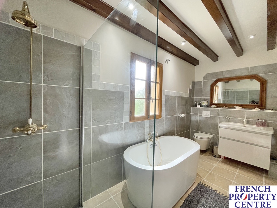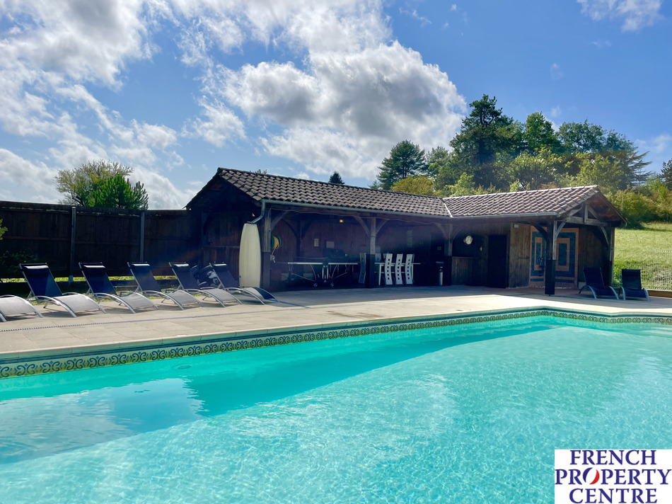 This exceptional property is located on a picturesque hill in the heart of the Perigord Noir, just three minutes from a village with all amenities. This renovated farmhouse boasts 3.5 hectares of meadows and woodlands. A pleasant driveway through the woods leads to the large 220 m2 house with four bedrooms, and a guest house with four to five bedrooms (139 m2). The large 12 m x 6 m swimming pool and 64 m2 reception room/pool house provide the perfect space for relaxation. The entire property is beautifully renovated, and there are several balconies on the upper floors from which to admire the sublime view. The large barn with a terrace contains two workshops, two greenhouses and a mezzanine with a spacious balcony to relax and enjoy al fresco dining. Do get in touch for a viewing !
