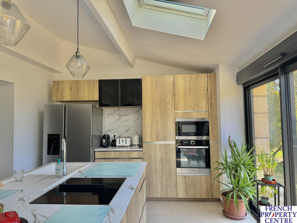 To the ground floor is a stunning open plan kitchen (with feature island) / diner / living room (with feature woodburner), two good sized bedrooms and a spacious modern bathroom with separate roll top bath, walk in shower, sink and WC. There is also a small utility room to the ground floor which is ideal as it leaves the striking open plan living space uncluttered with functional white goods like washing machines / tumble dryers. To the upper floor is the master bedroom with shower room and dressing area, a further bedroom and additional shower and a small office area. Externally the property offers a great entertaining space with swimming pool, covered terrace, cuisine d'ete, bread oven and an additional large barn, ideal for future development (subject to planning).