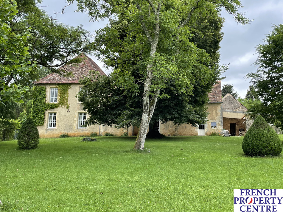 20 minutes from Bergerac and its airport, this mansion, extended in the 1930s, peacefully watches over its park and garden where a swimming pool has been discreetly hidden from view and surrounded by wooded and green nature. With its 234m2 spread over two levels, it consists of two vestibules, a kitchen-diner with access to the park and a covered terrace, a 56m2 living-dining room, two bedrooms, a bathroom and a separate toilet on the ground floor, and three bedrooms, a mezzanine and a shower room with toilet upstairs. A double-height barn and an open workshop serving as a boiler room and pool room, as well as a cellar, all in stone, complete the building. An orchard and a beautifully wooded and fenced garden surround the property and an extra plot of land serves as parking for guests. A gem! Virtual tour available on request.