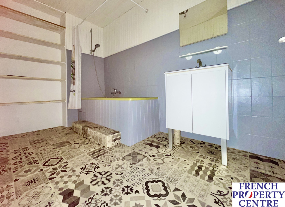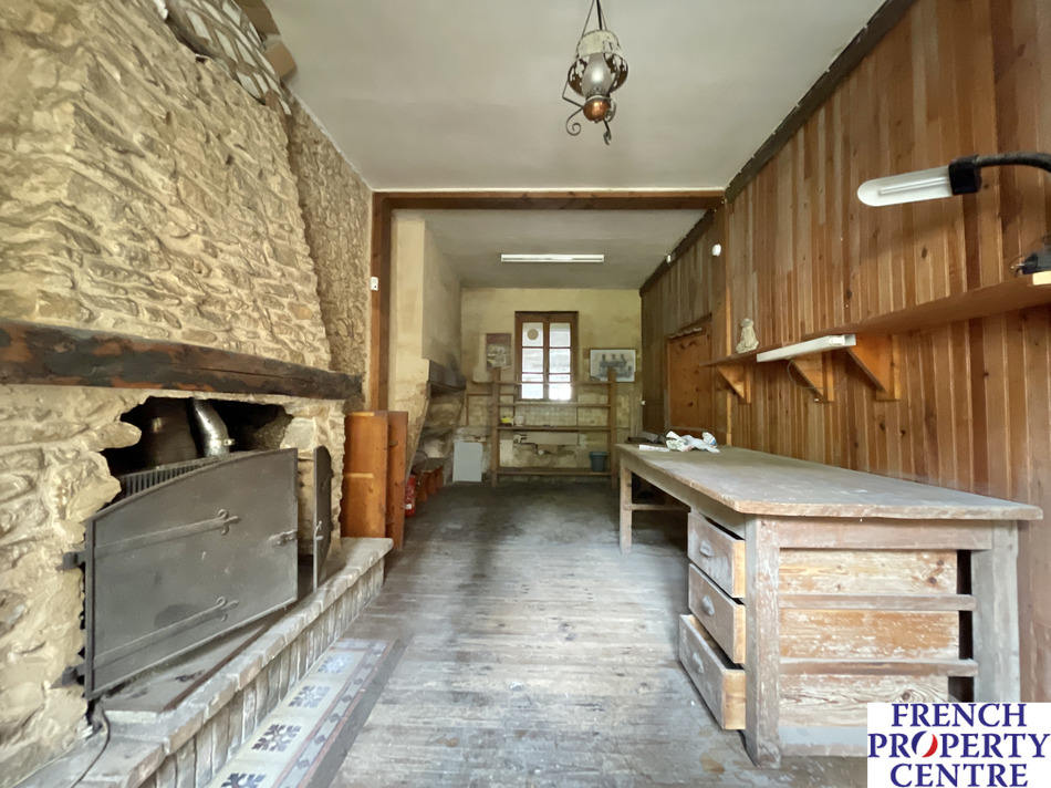 it comprises 2 floors : On the ground floor there are 2 entrances leading into what was the old bakery shop (19m2) and the storage room (22m2), large room from the old bakery (70m2) with a functional cold chamber. First floor: Living room with a fireplace with kitchen (44m2), office, bathroom, 2 bedrooms, WC. Second floor has 3 bedrooms, shower room, WC. A lovely terrace is the jewel in the crown of this lovely home.