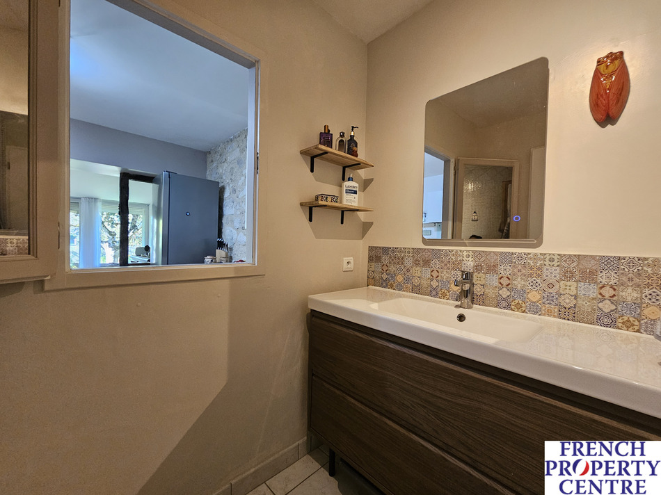 Lovely renovated old village house, comprising on the ground floor, a large entrance hall, fitted kitchen, living room, dining room, shower room, toilet, laundry/boiler room, pantry and integrated garage. On the first floor there are 4 bedrooms, (one is being used as a dressing) and a separate toilet. Access to the attic with stairs. Could be modernized to provide additional living space. Benefiting from an enclosed garden and a superb view of the village lake which is easily accessible. A small stone outbuilding in the garden for your gardening tools completes this property. Oil central heating, double glazing and mains drainage. ideally located in a quiet area in the heart of a historic village with all shops within walking distance. Must be seen quickly.
