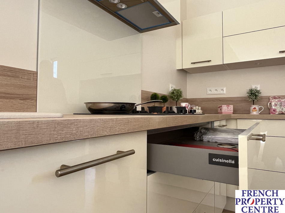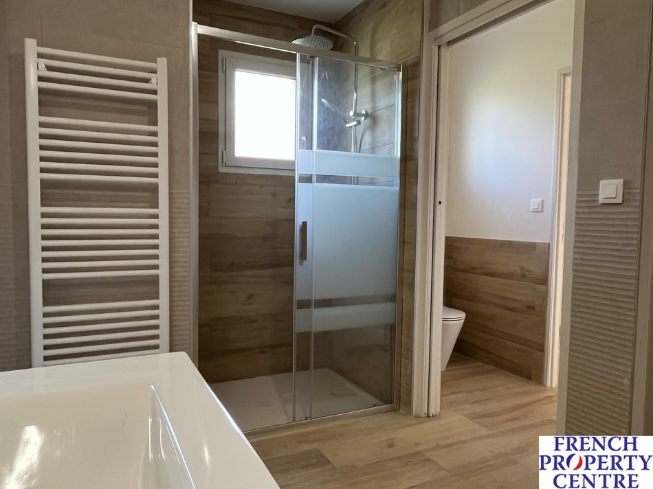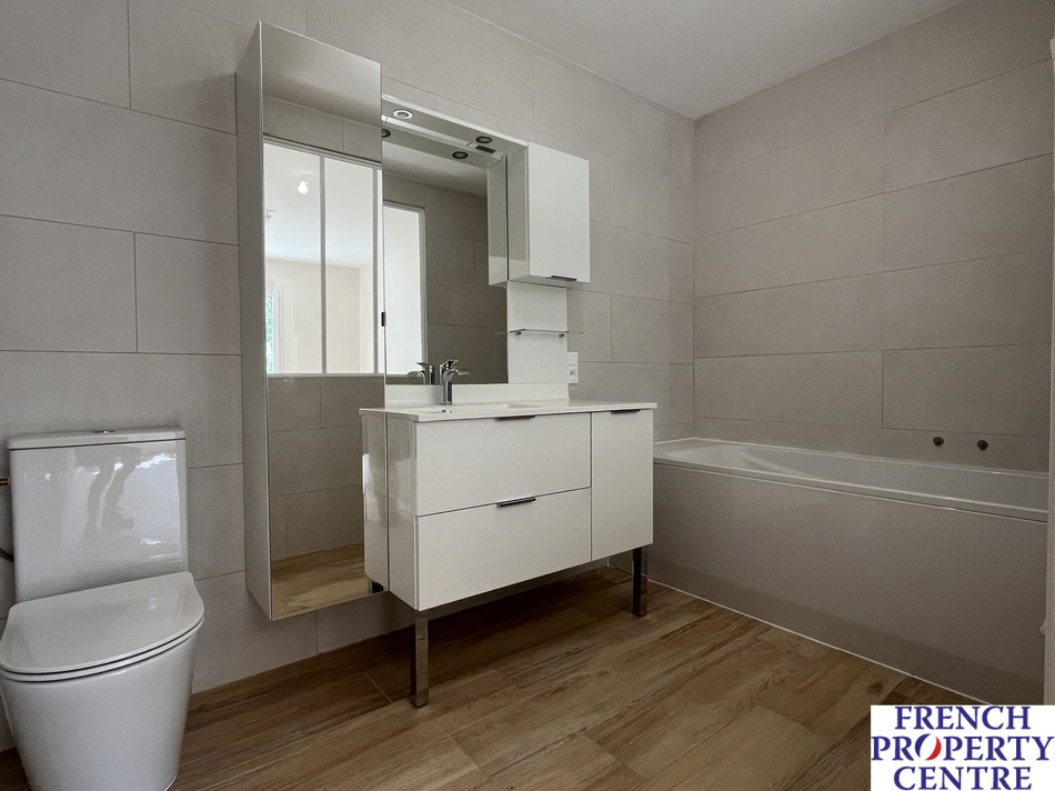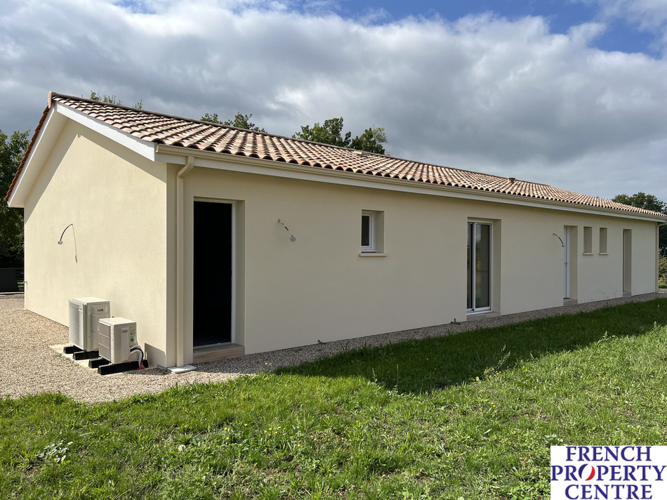New and immaculate 120m2 bungalow, comprising 3 bedrooms including two en suites, a 45m2 dining/living space with an equipped open plan kitchen and a utility room. 25m2 attached garage. Set on a 900m2 fenced garden of approximately with electric gate. Graveled driveway and house perimeter. Equipped kitchen with an island and retractable table, bathtub with waterfall faucet, quality materials and fixtures. 30 minutes from Saint-Emilion, 50 minutes from Bordeaux and 40 minutes from Bergerac, this house is perfect for settling down, close to a town with all amenities for daily needs and children's schooling. A gem, and an opportunity not to be missed!